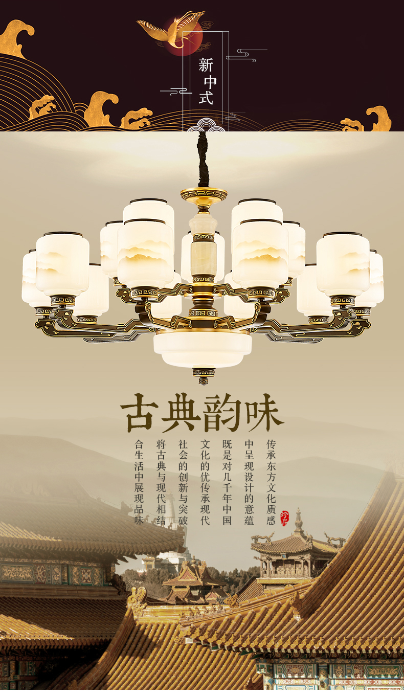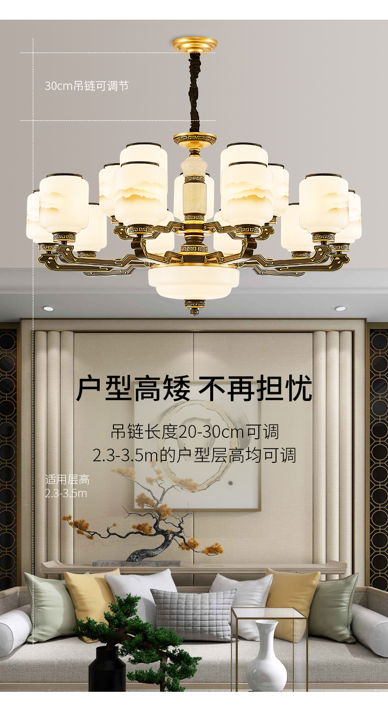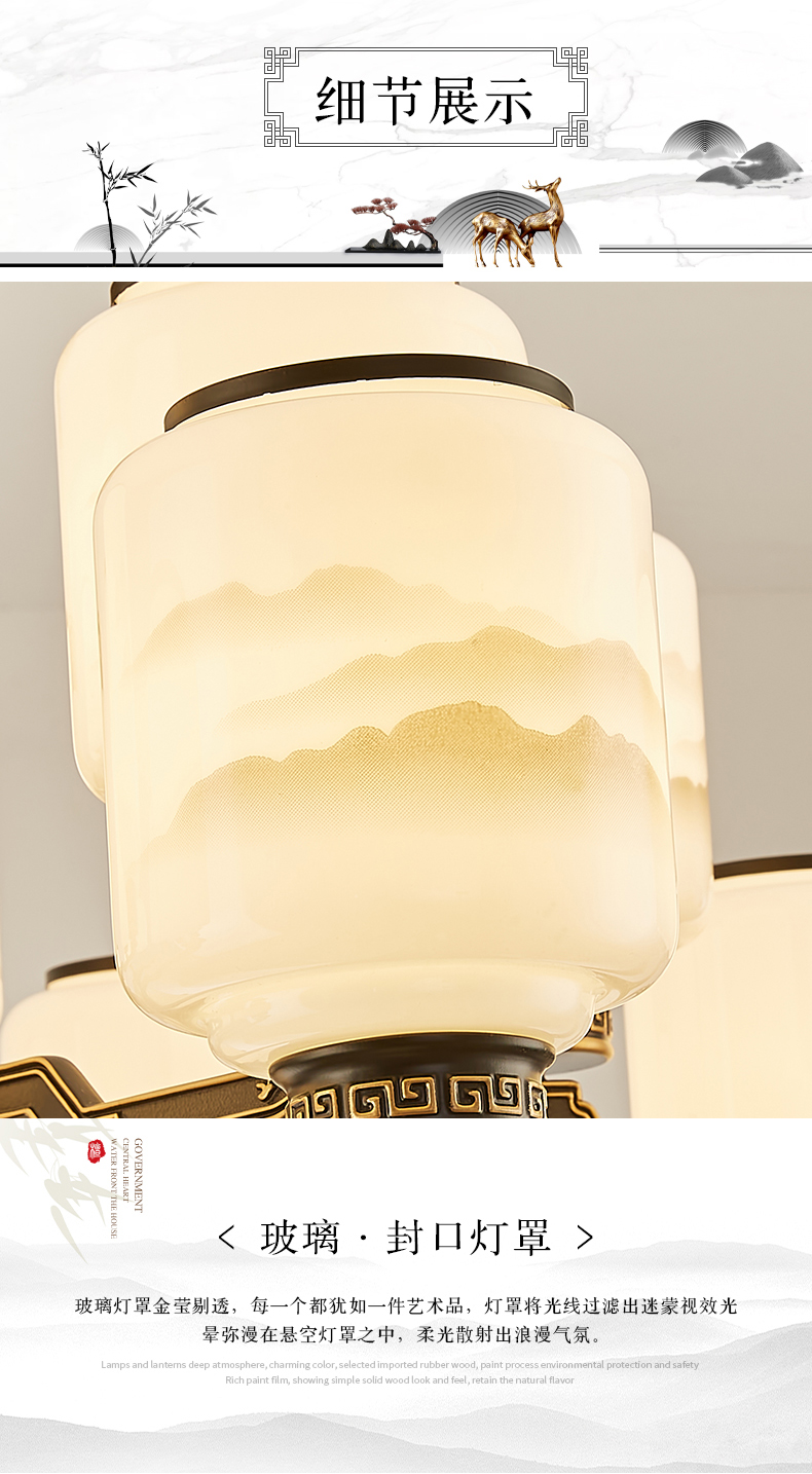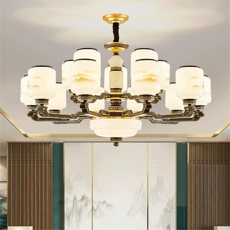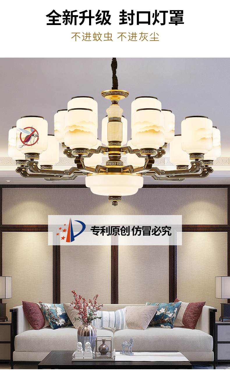 10-head fan lamp [jade center column] three-color light source