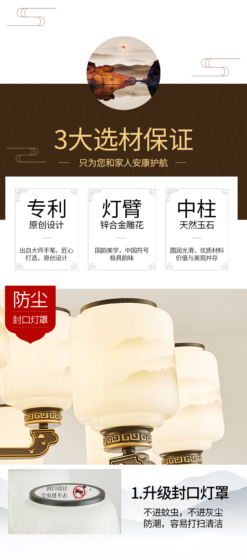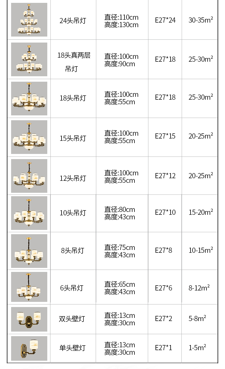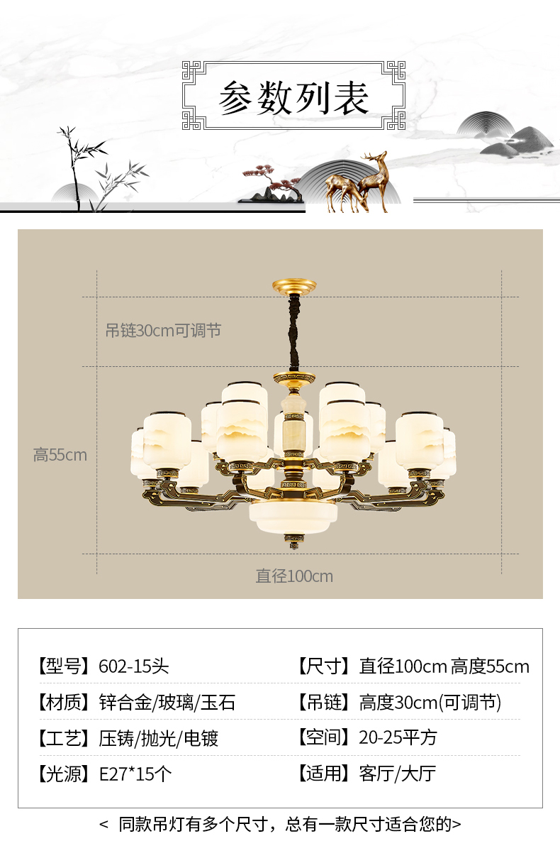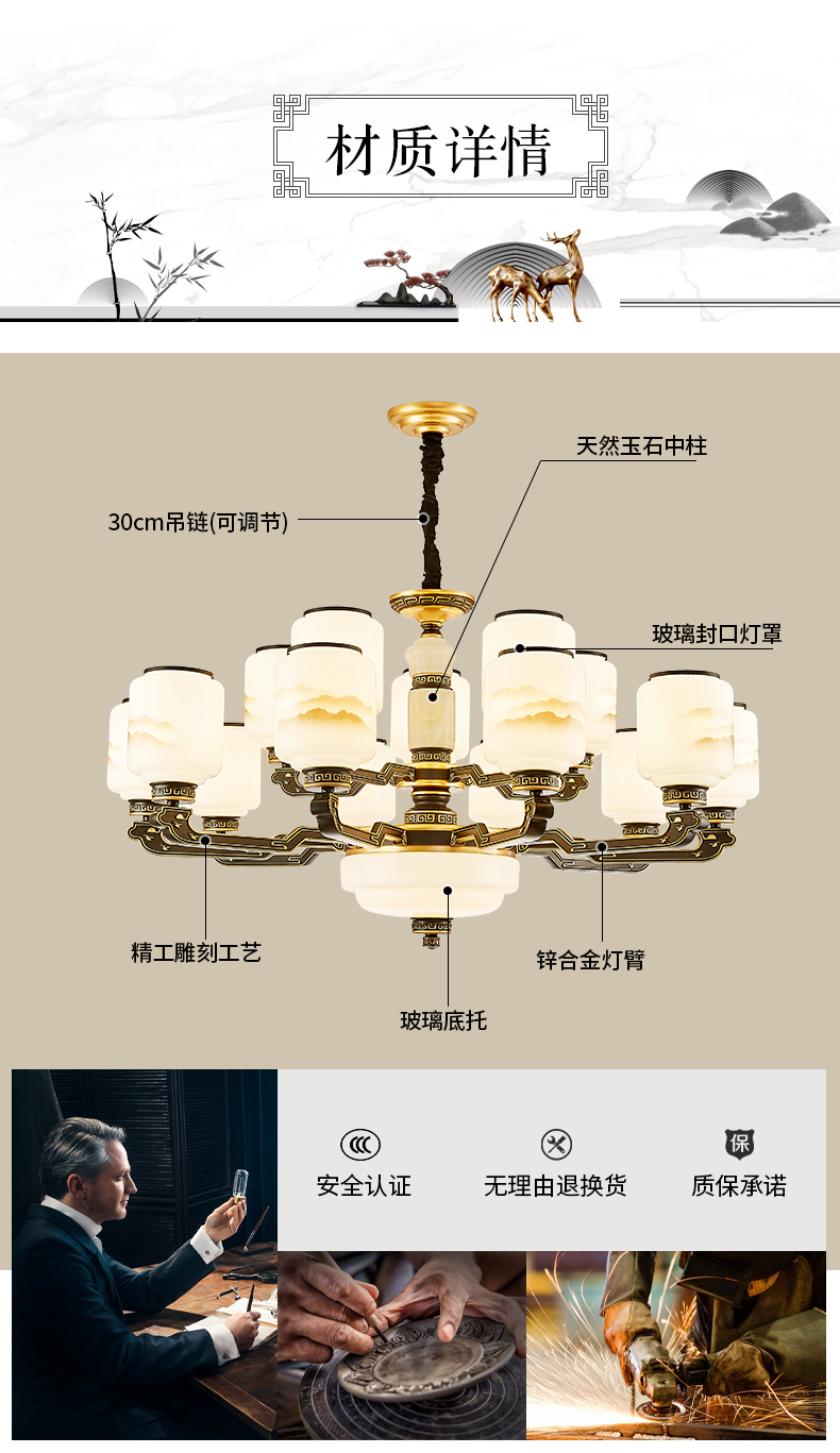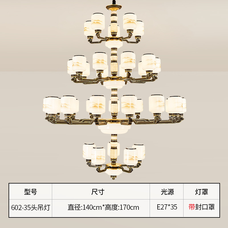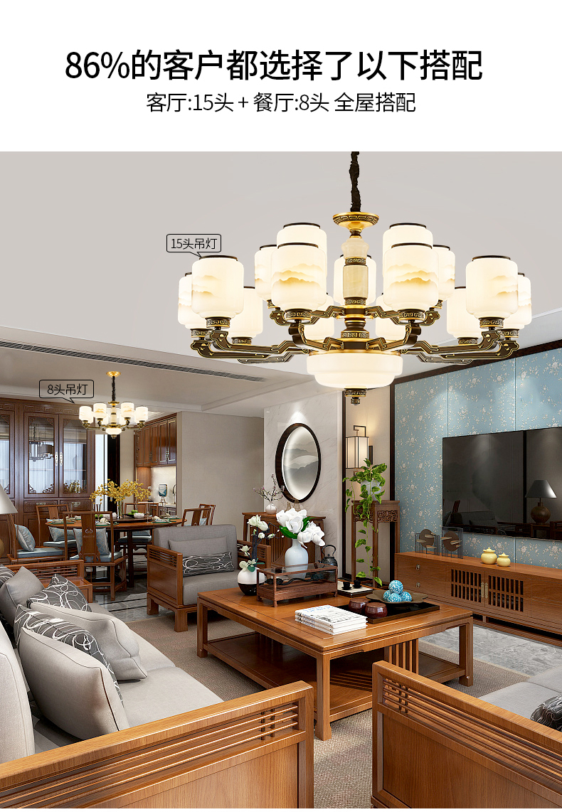 10-head fan lamp [jade center column] three-color light source
