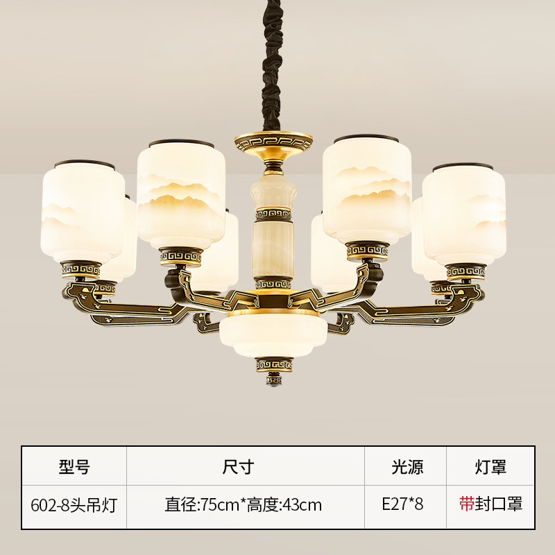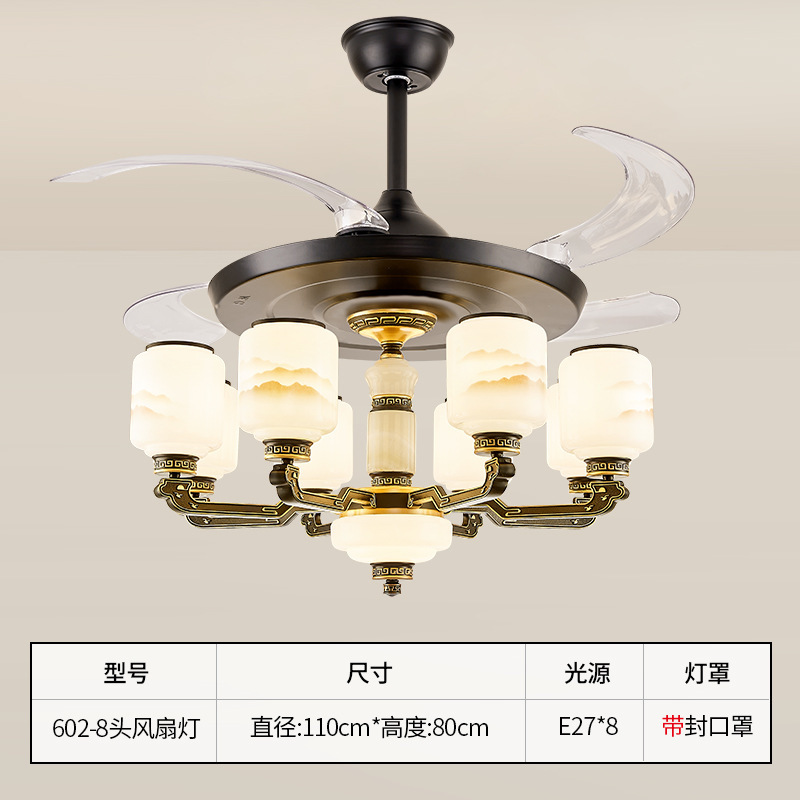 8-head fan lamp [jade center column] three-color light source