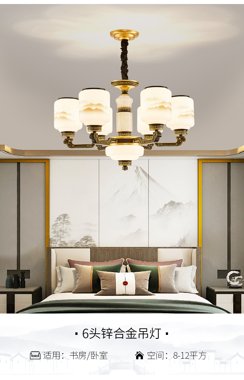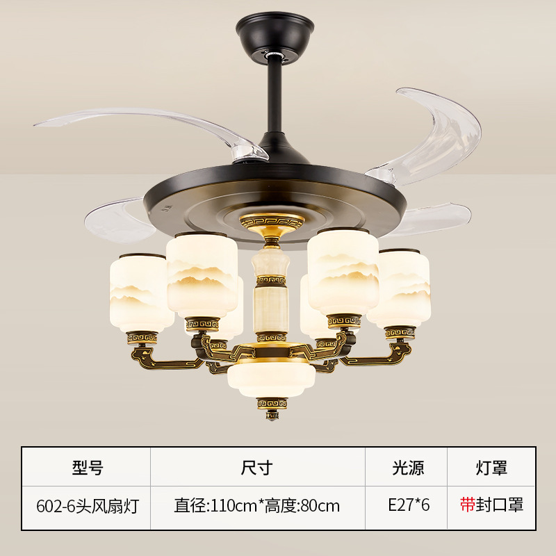 6-head fan lamp [jade center column] three-color light source