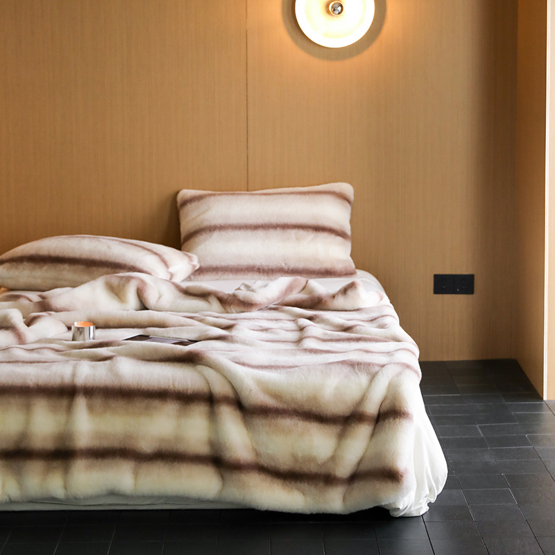 High-end Gradient Spray Strip Mink Wool Blanket