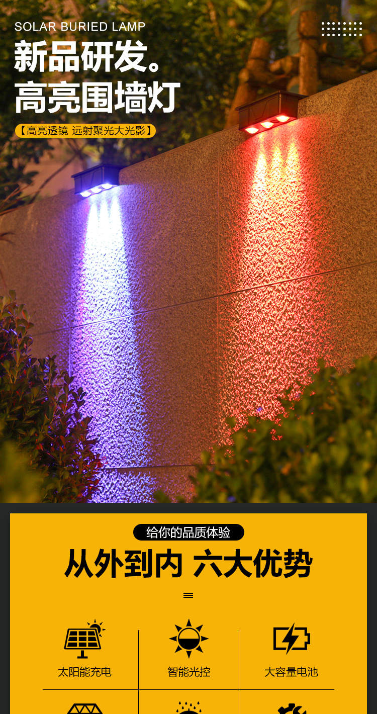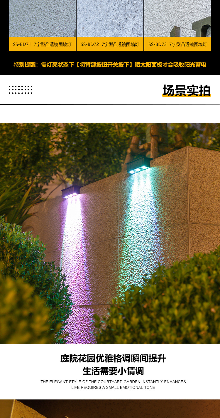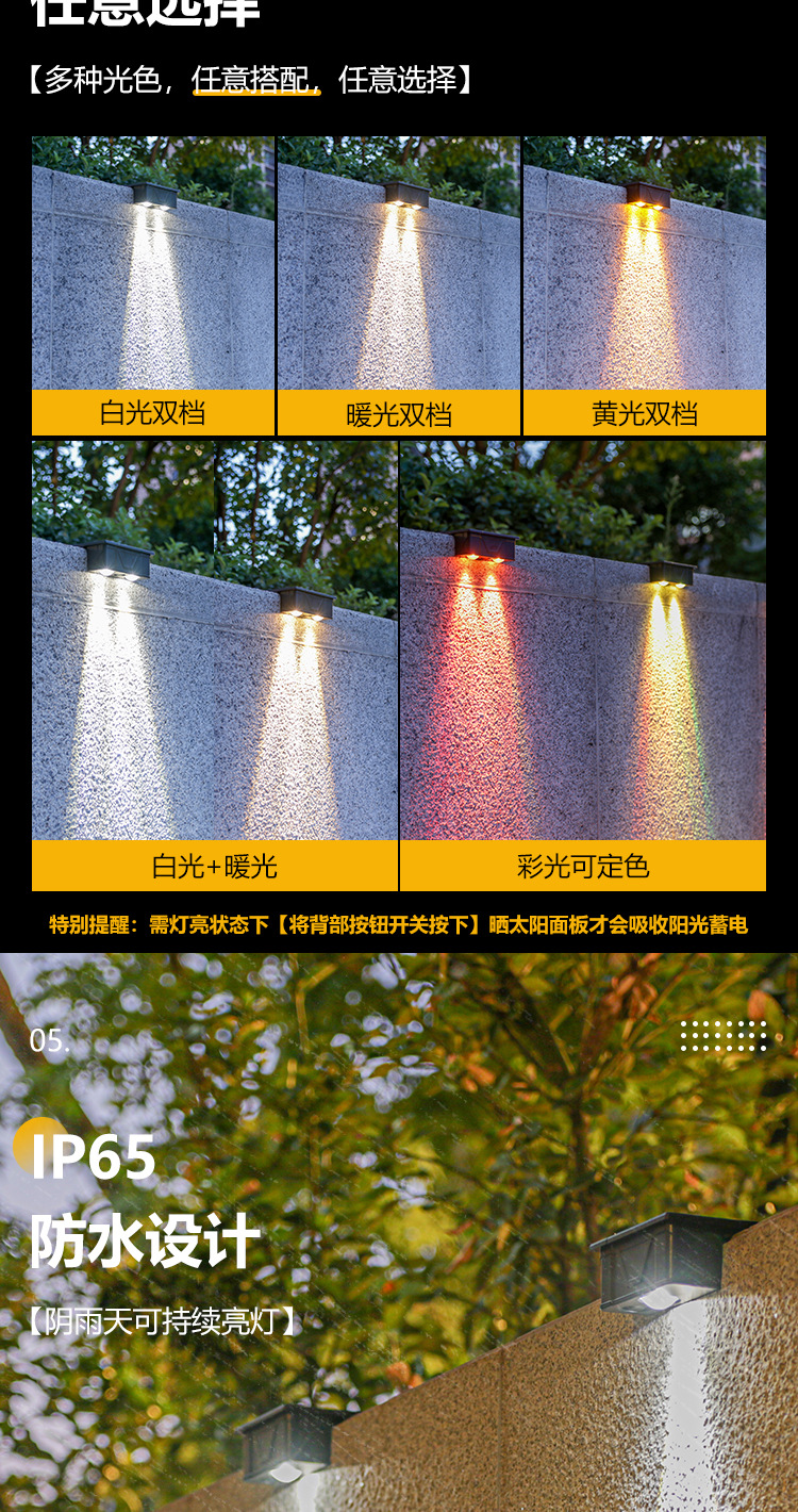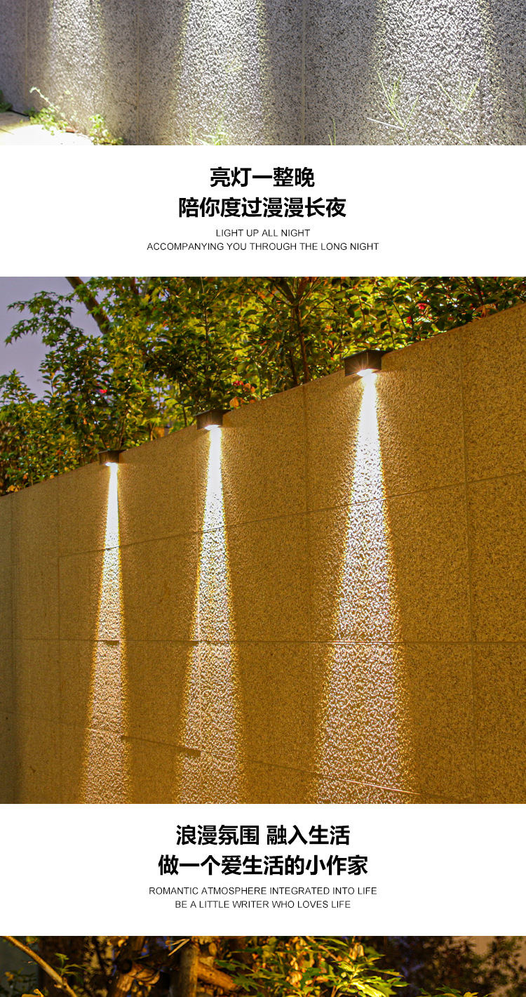 outdoor wall lamp solar wall washer waterproof garden villa wall decorative lamp home courtyard balcony ambience light 中文版