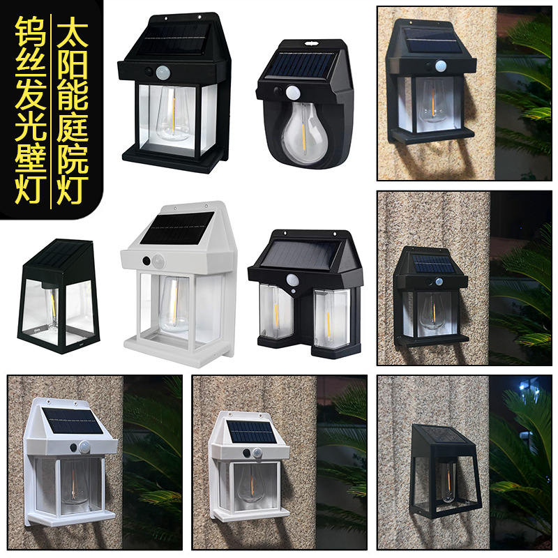solar energy outdoor wall lamp human body induction three-mode tungsten wire wall lamp garden villa courtyard small night lamp rainproof 中文版