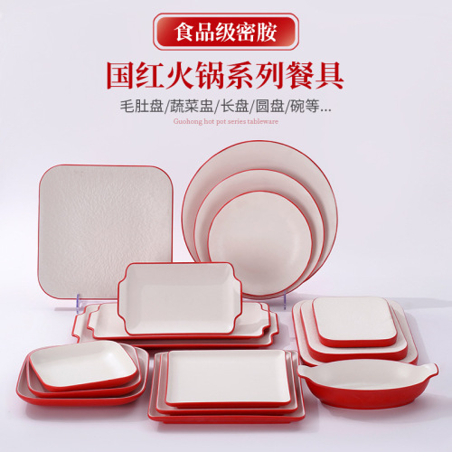 buffet hot pot plate side dish rectangular plate barbecue barbecue special plate creative melamine imitation porcelain long plate