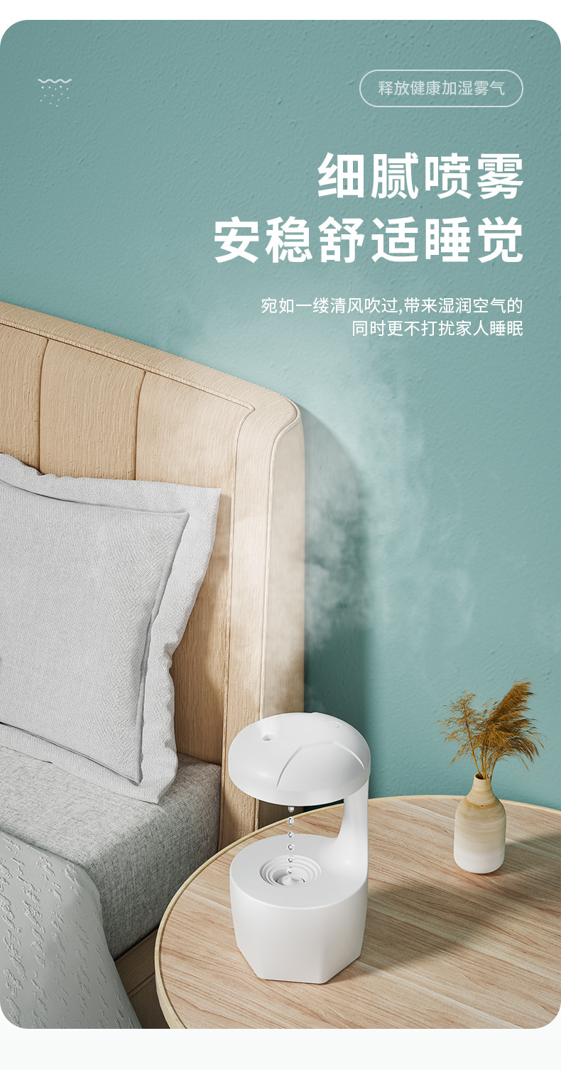 New Anti-Gravity Humidifier Household Small Lamp Water Drop Backflow Anti-Dry Burning Wholesale Cross-Border Mute Heavy 中文版