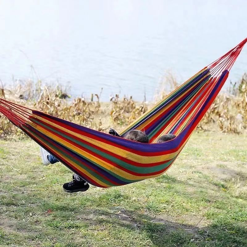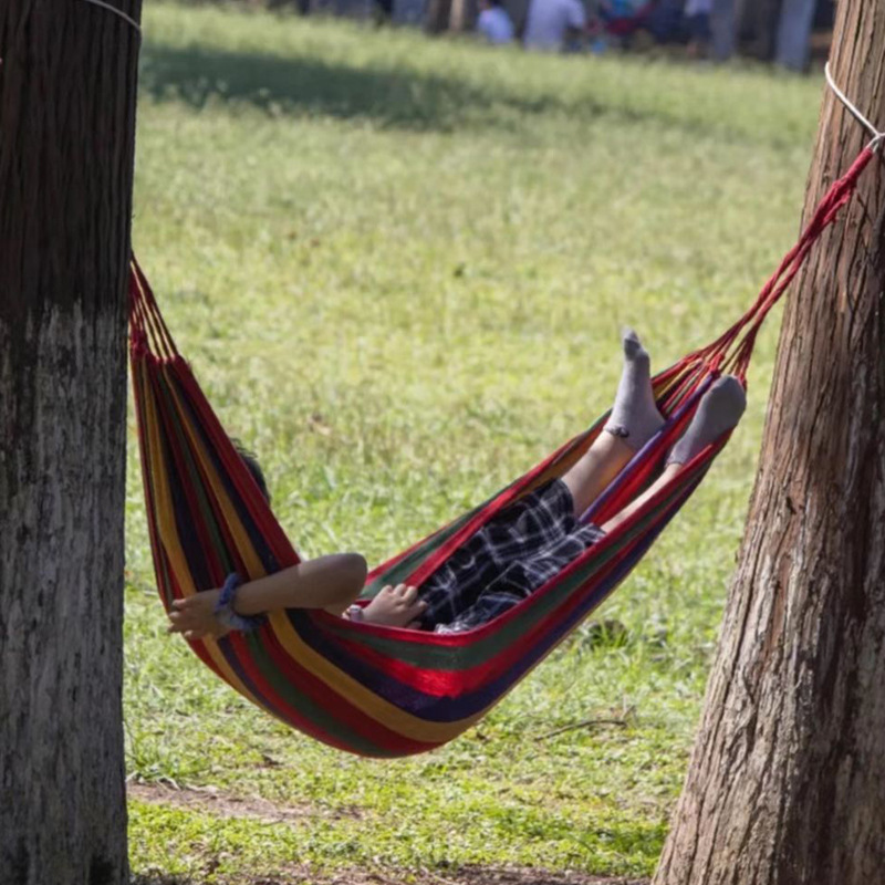 Outdoor Hammock Canvas Camping Casual Thickening Anti-Rollover Duck Mouth Buckle Hammock Travel Canvas Hammock 中文版