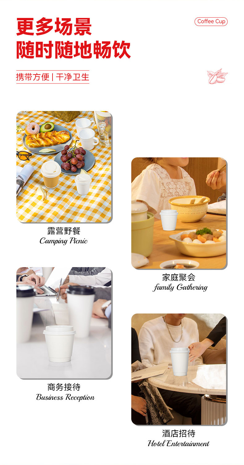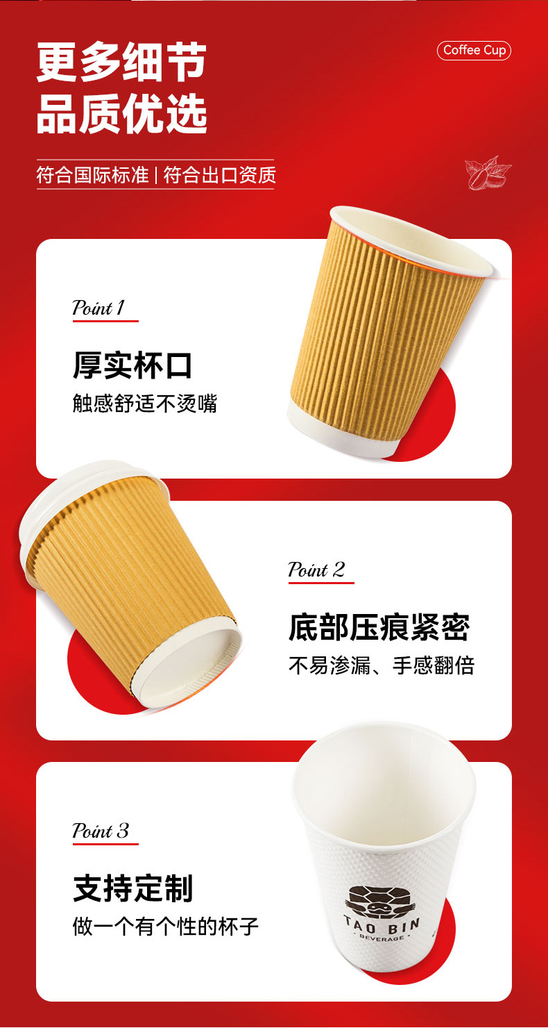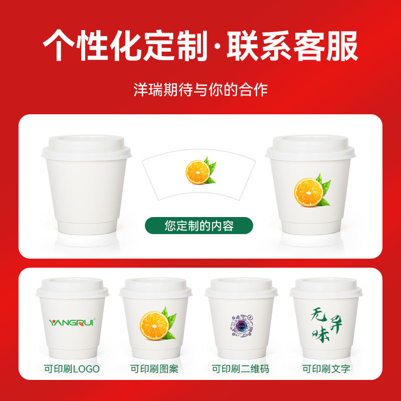 customized disposable paper cup anti-scald double-layer household insulated coffee cup hot drink hollow cup corrugated milk tea cup 中文版