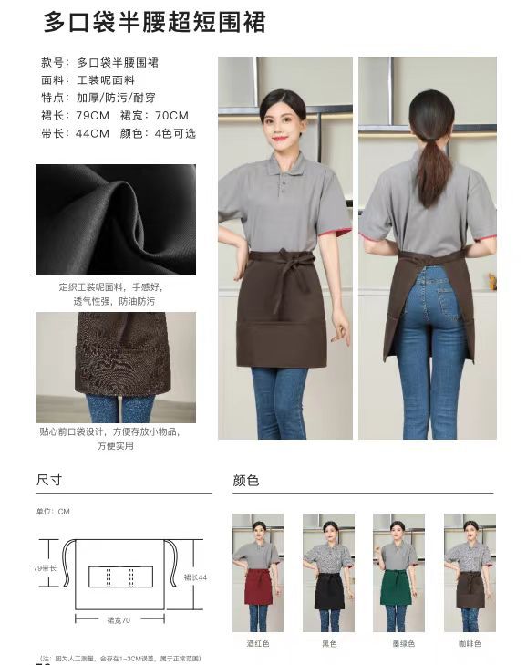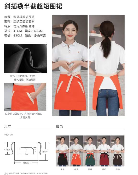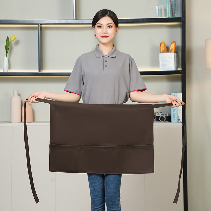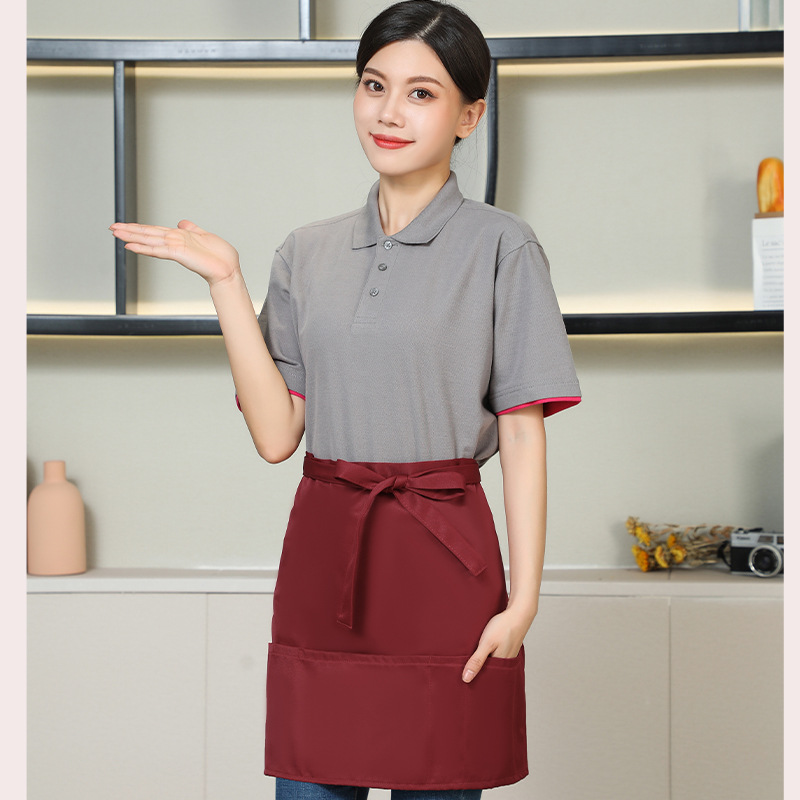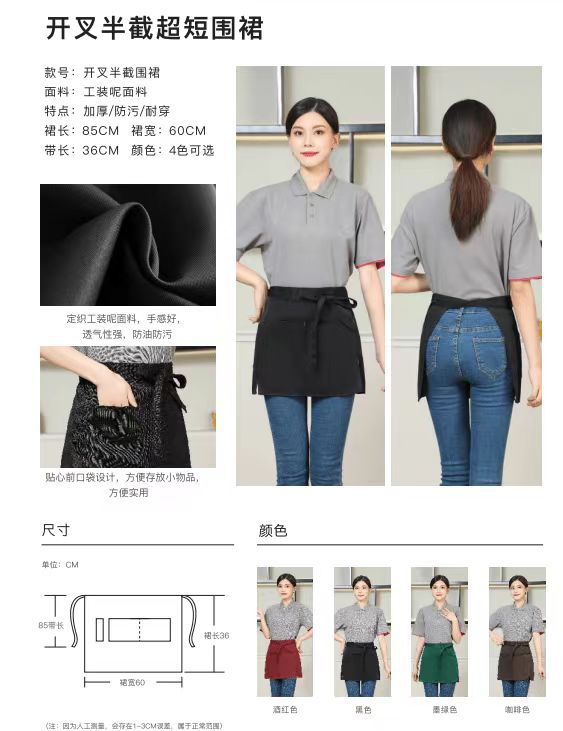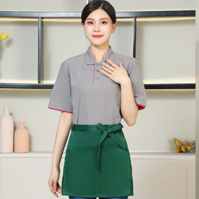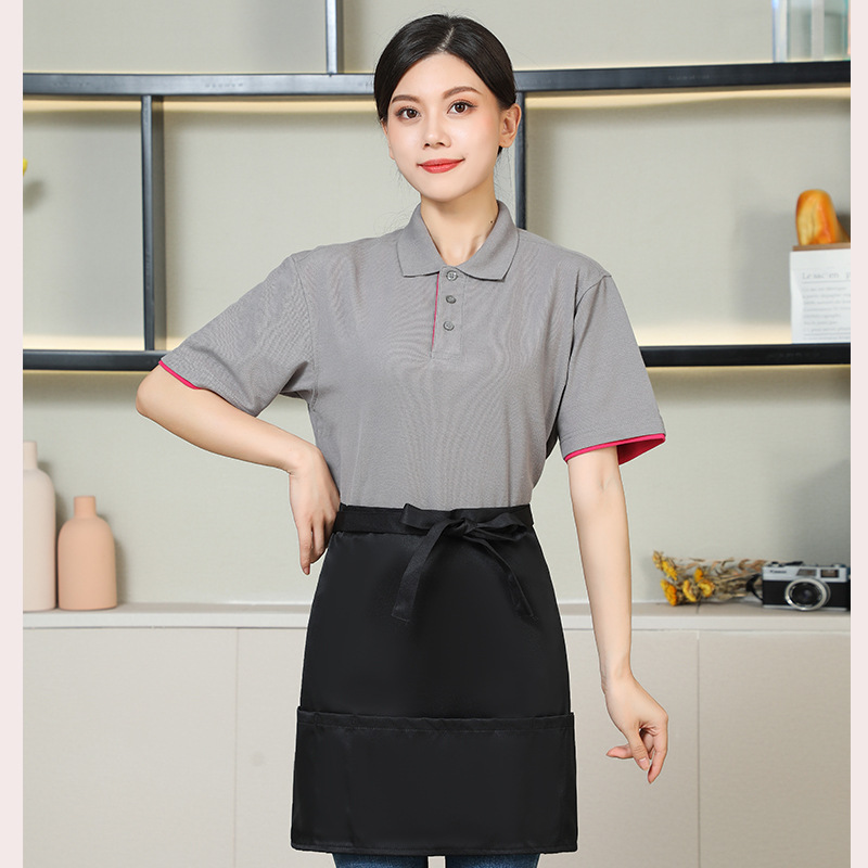 new half apron logo printing supermarket milk tea shop coffee shop hot pot shop hot dyeing worker work clothes for women 中文版