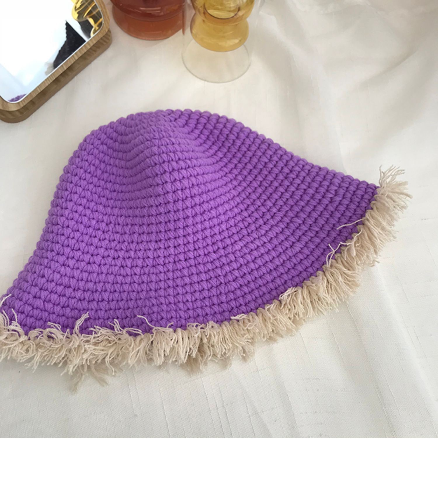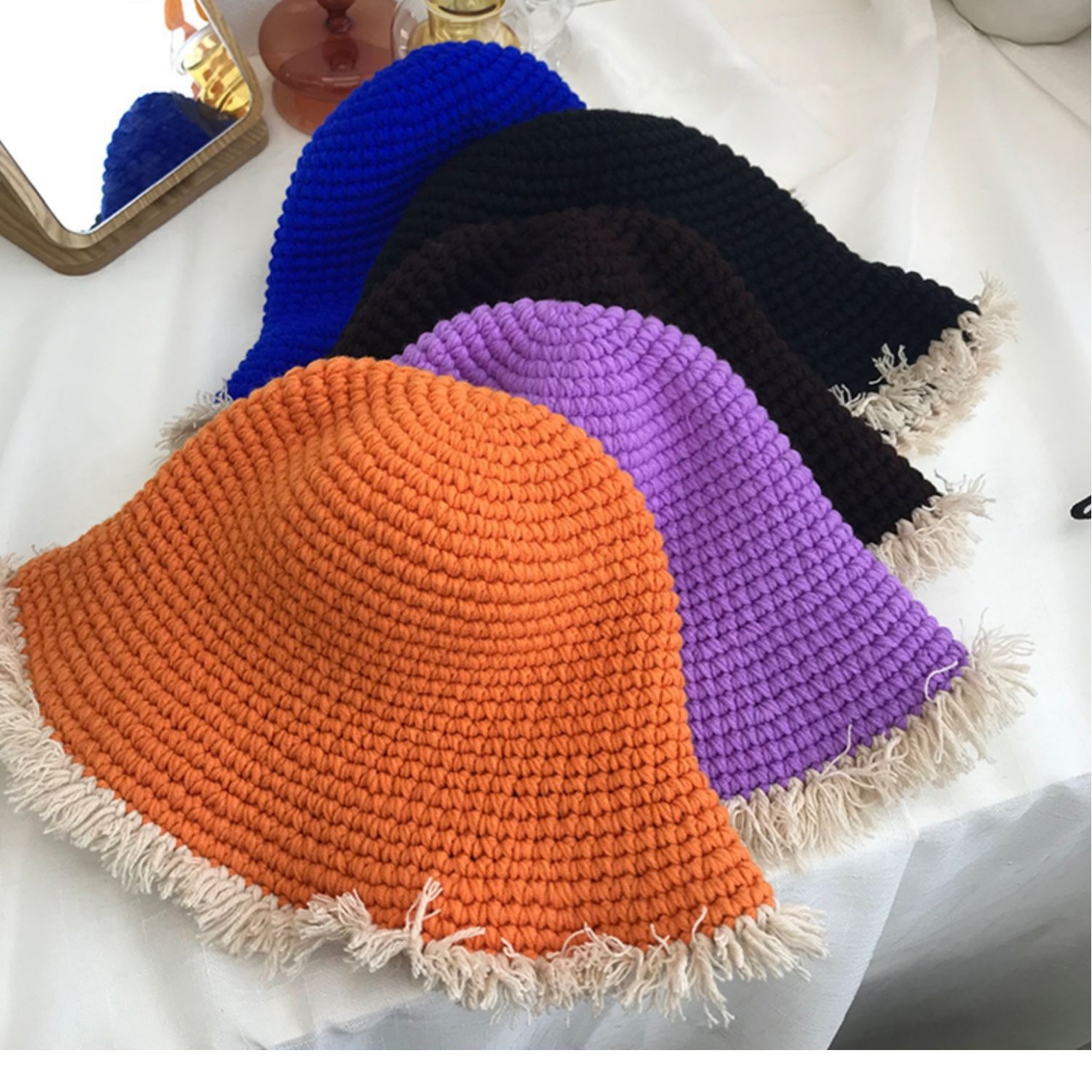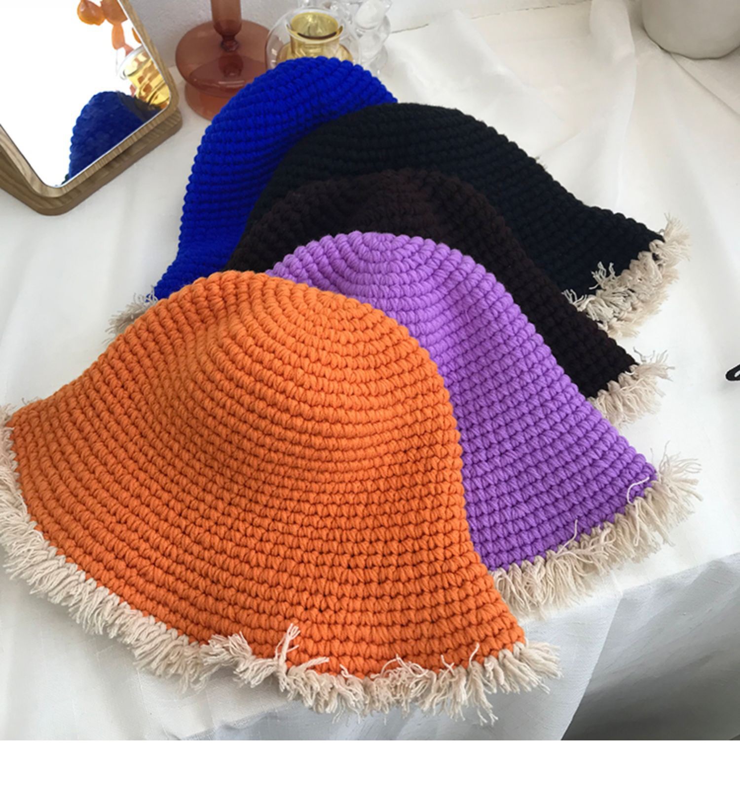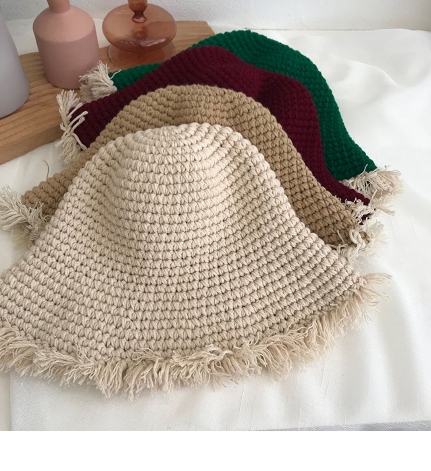 Handcrafted, there may be size variations, and it's not possible to ensure that each one is perfectly uniform. The fringes are also hand-tied, so if you're very particular about quality, please consider this carefully before purchasing. The colors may vary slightly from what you see on your phone due to the camera's display.