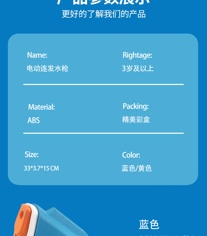 electric continuous water gun [three-generation upgraded version + sky blue + artificial water]]