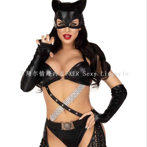 feixianger sexy uniform european and american patent leather sexy suit sexy queen sm sexy lingerie clothing wholesale 中文版