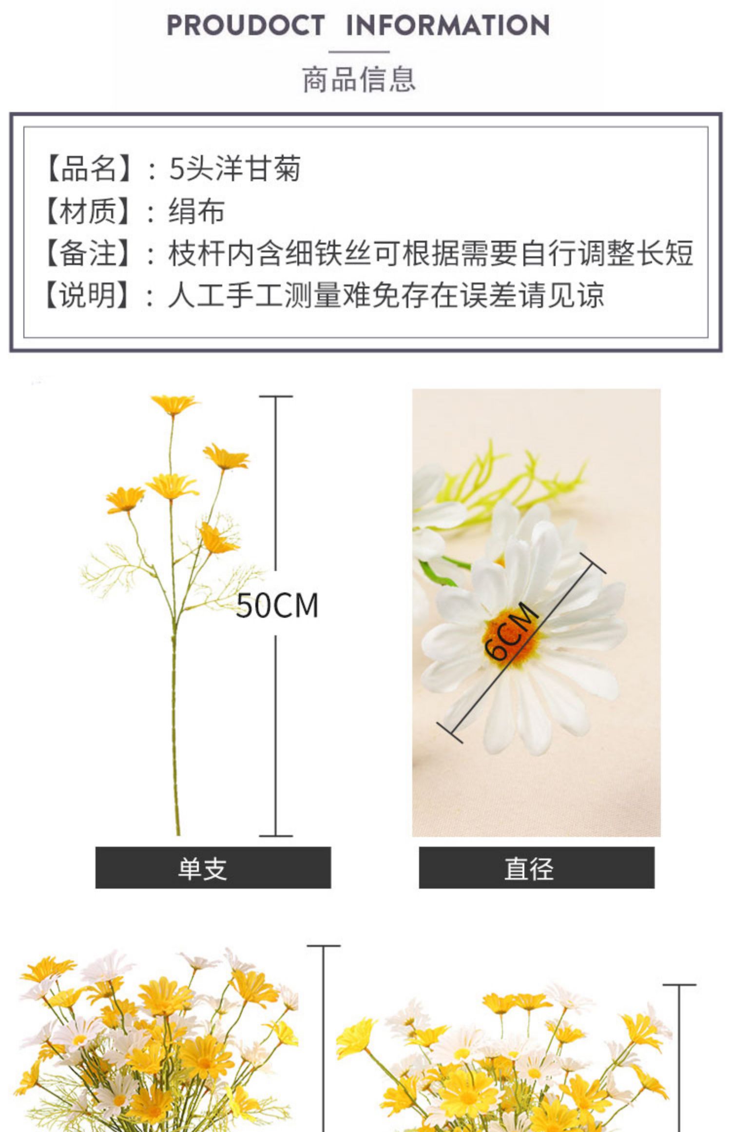 Chamomile Flower Little Daisy Fake Flower Spring Outing Photographing Props Home Living Room Decoration Flowers Silk Flower Ornaments 中文版