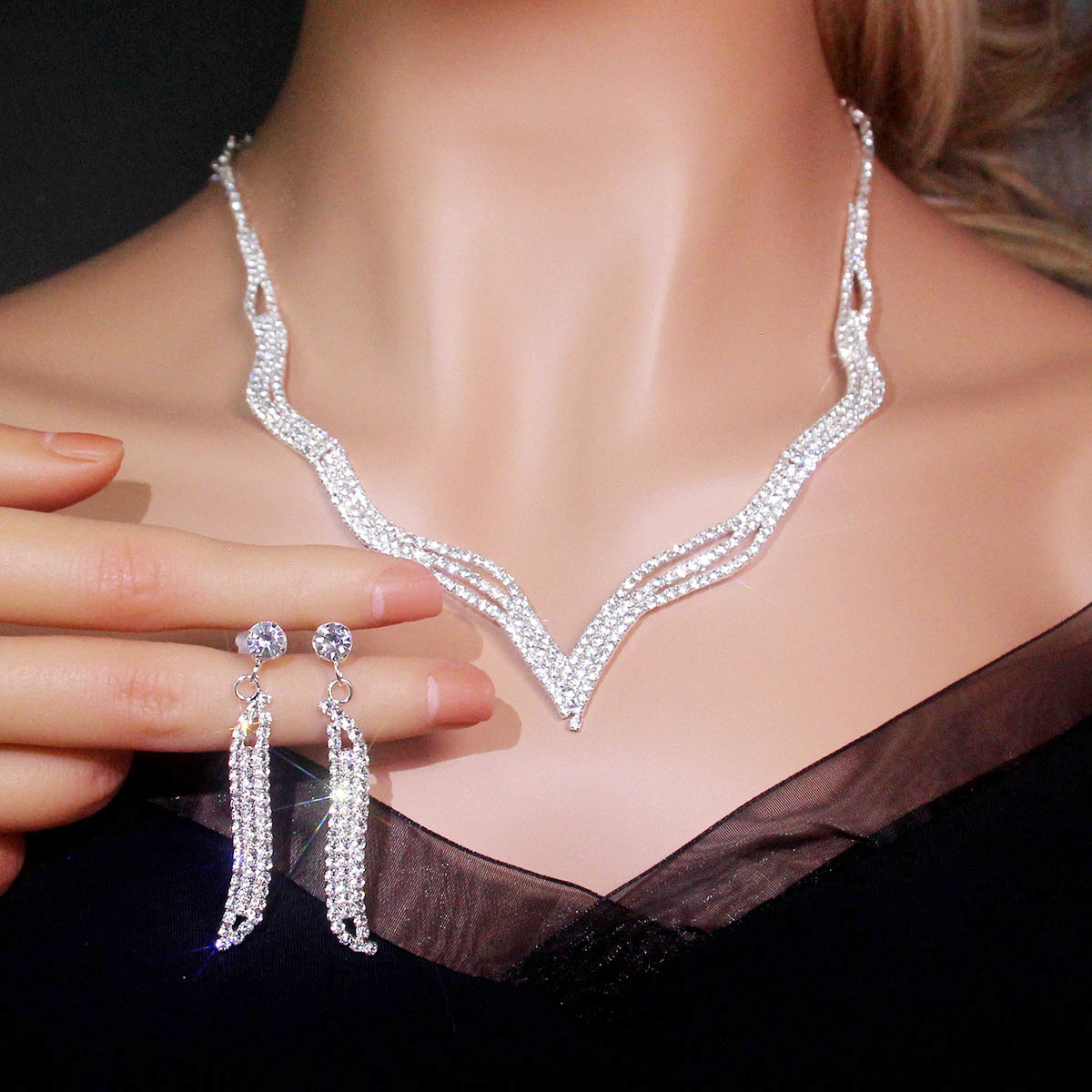 new necklace and earrings suite silver claw chain diamond jewelry korean bride wedding dress accessories factory wholesale