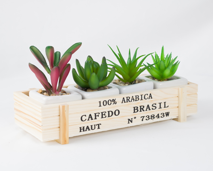wood color wooden box (can hold 3 pots of succulent)