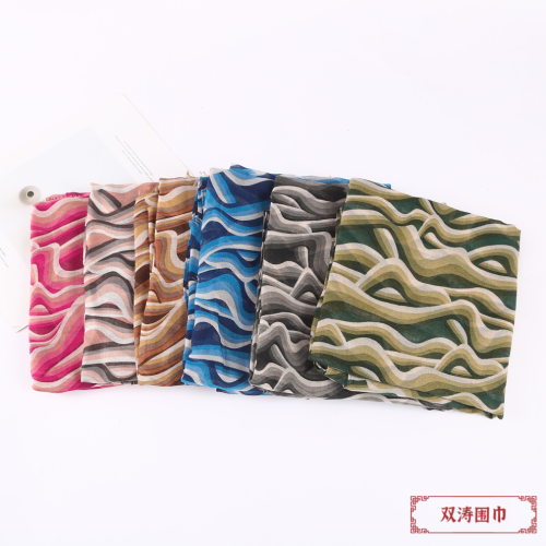 colorful wave striped yarn-dyed light spring and summer cotton and linen texture sunshade environmental protection scarf stripes scarf factory direct sales