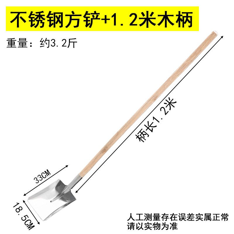 thick stainless steel-square shovel head +1.2 m wooden handle