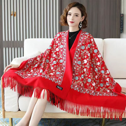 Nepalese exquisite hand-embroidered cashmere shawl with Chinese ethnic style, dual-purpose for women, direct factory sales, warmly welcomes new and old customers to negotiate cooperation.