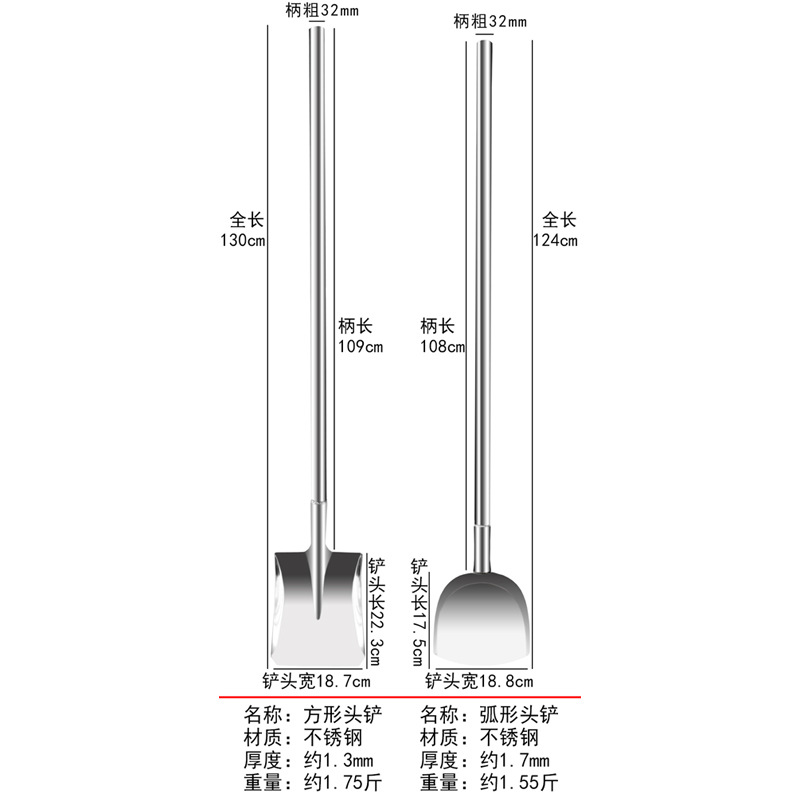 1.3 m [non-magnetic stainless steel] multi-function arc shovel