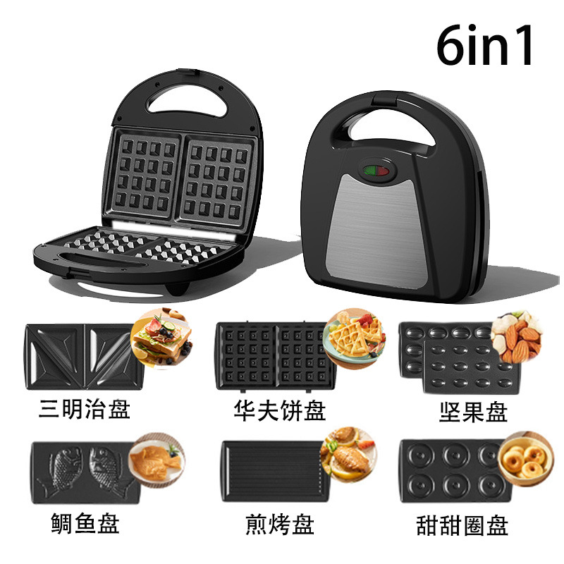 Product Features: Replaceable and removable 11 different baking trays (sandwich plates + waffle plates)"盘"在中文中通常指的是一种用于盛放物品的容器,如盘子、盘子等。在英文中,"盘"可以翻译为 "plate" 或 "dish"。Striped Griddle + Doughnuts"盘"在中文中通常指的是一种用于盛放物品的容器,如盘子、盘子等。在英文中,"盘"可以翻译为 "plate" 或 "dish"。+鲷鱼"盘"在中文中通常指的是一种用于盛放物品的容器,如盘子、盘子等。在英文中,"盘"可以翻译为 "plate" 或 "dish"。+坚果"盘"在中文中通常指的是一种用于盛放物品的容器,如盘子、盘子等。在英文中,"盘"可以翻译为 "plate" 或 "dish"。+回型"盘"在中文中通常指的是一种用于盛放物品的容器,如盘子、盘子等。在英文中,"盘"可以翻译为 "plate" 或 "dish"。+小丸子"盘"在中文中通常指的是一种用于盛放物品的容器,如盘子、盘子等。在英文中,"盘"可以翻译为 "plate" 或 "dish"。Egg Roll"盘"在中文中通常指的是一种用于盛放物品的容器,如盘子、盘子等。在英文中,"盘"可以翻译为 "plate" 或 "dish"。+ rice ball"盘"在中文中通常指的是一种用于盛放物品的容器,如盘子、盘子等。在英文中,"盘"可以翻译为 "plate" 或 "dish"。+ cake plate);750W Dual-Sided Heating, Smart Temperature Control; Non-Stick Coating Baking Pan, Easy to Clean; Anti-Scald Handles, Smart Indicator Light