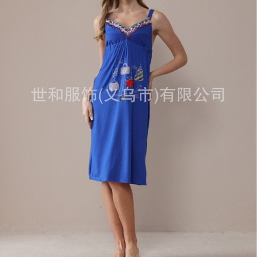 2024 spring and summer new foreign trade rhinestone printing embroidered lace elastic chest circumference high elastic mid-length foreign trade ladies sleeping 中文版