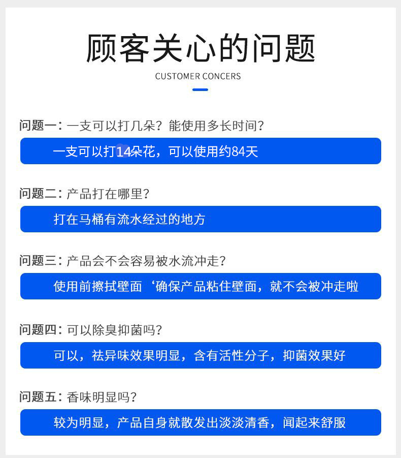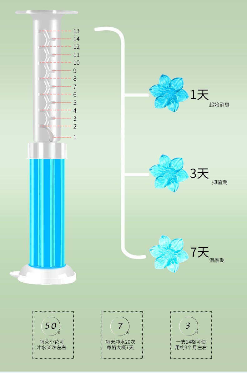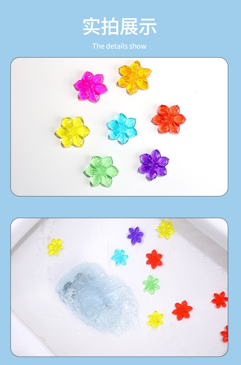 usage: gently squeeze it to the edge of the urinal or toilet, sending fragrance through water flushing, one can make 14 small flowers