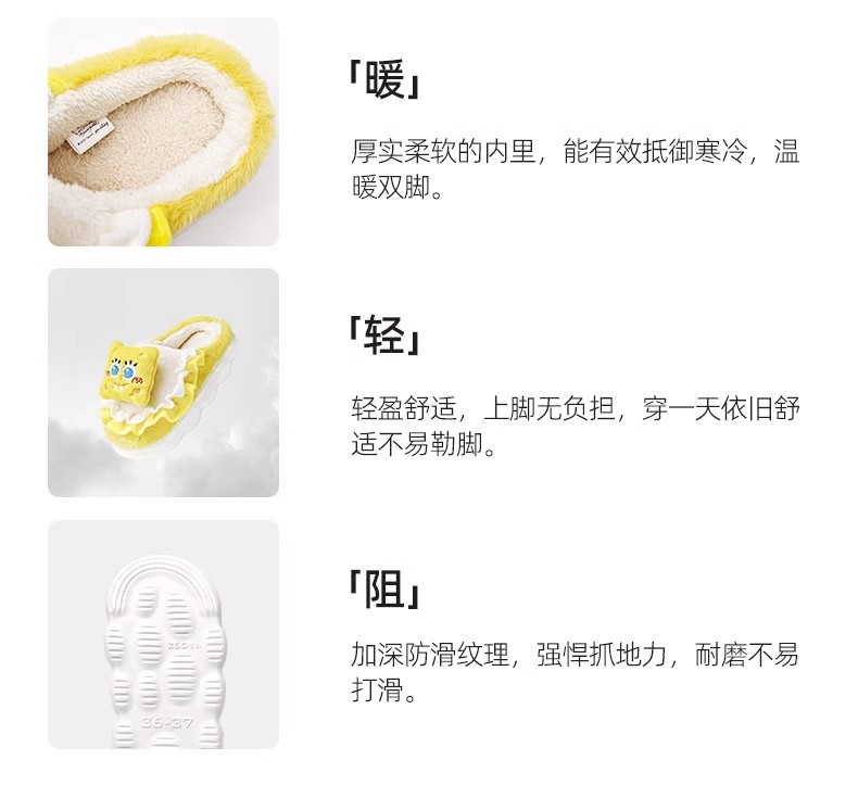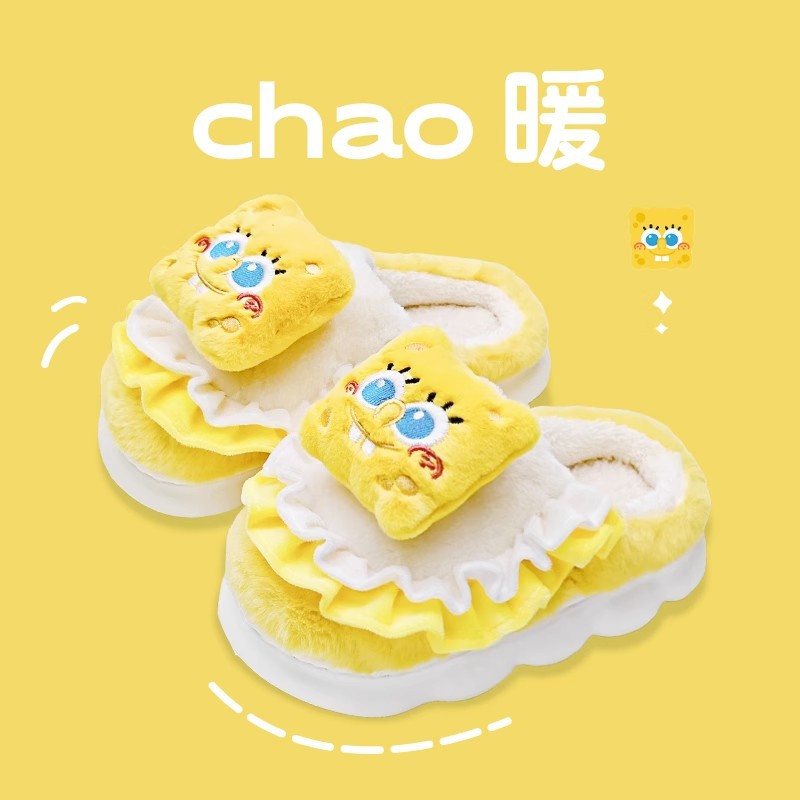 cute cotton slippers female winter spongebob indoor home warm velvet woolen slipper winter 中文版