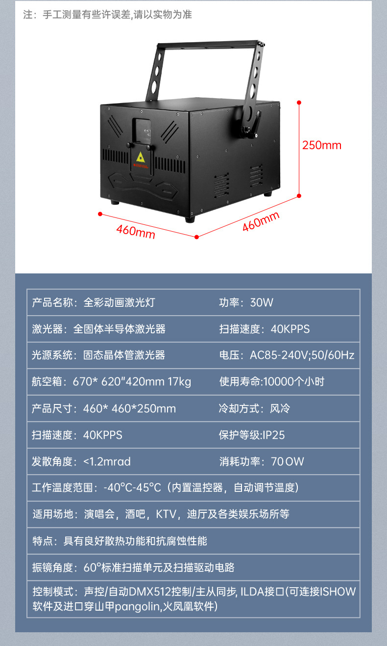 Length, width, and height = 34*25*24cm, 5.17kg, 【3W 1 unit】