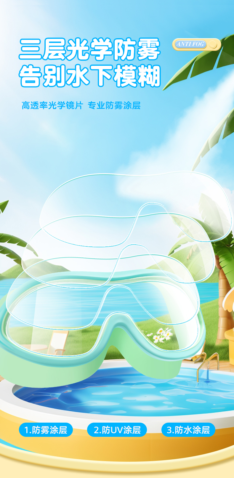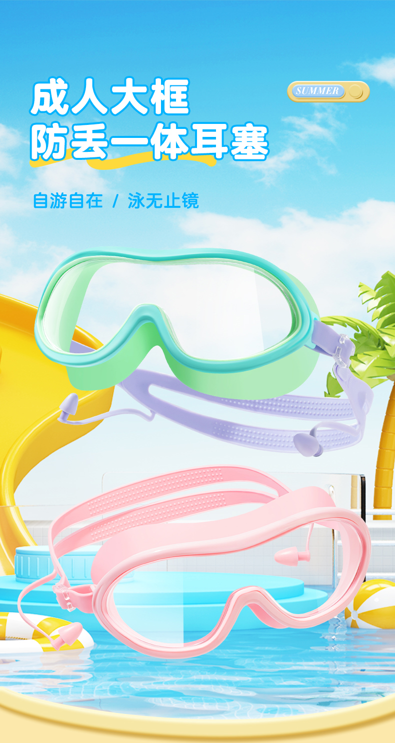 眼眶 镜片防雾防UV三层光学防雾告别水下模糊 连防丢耳塞