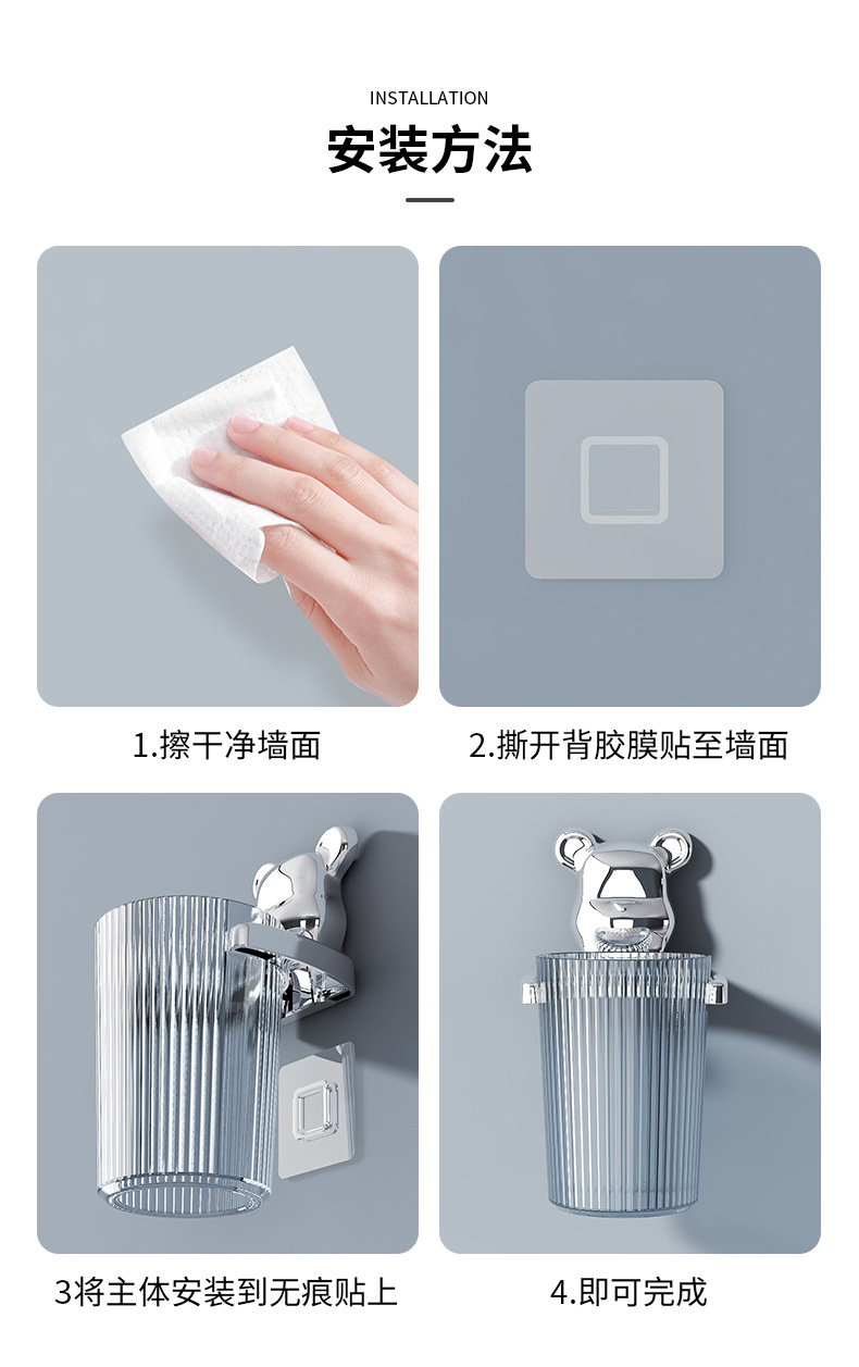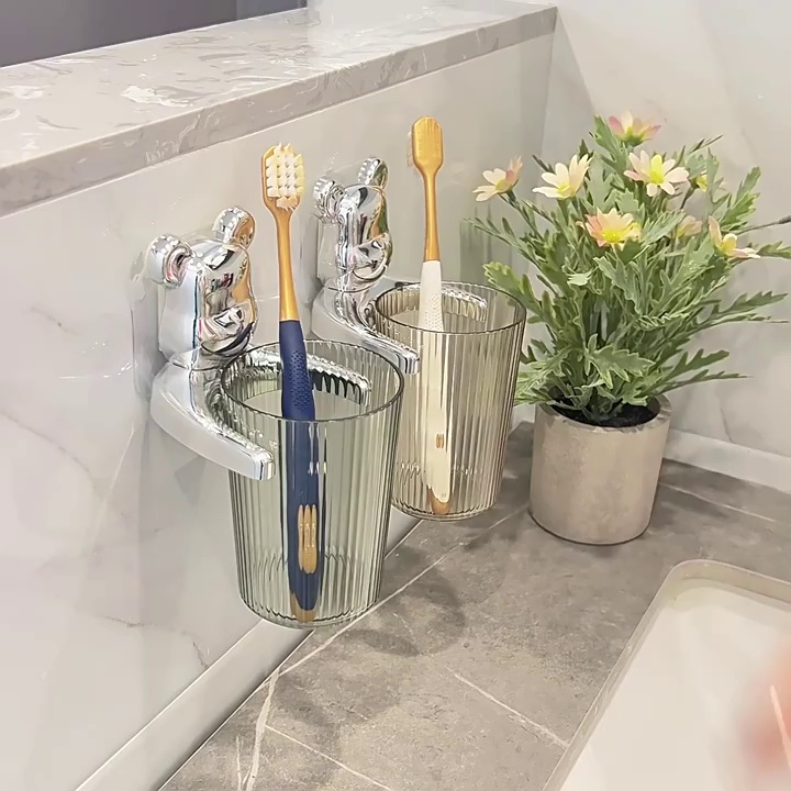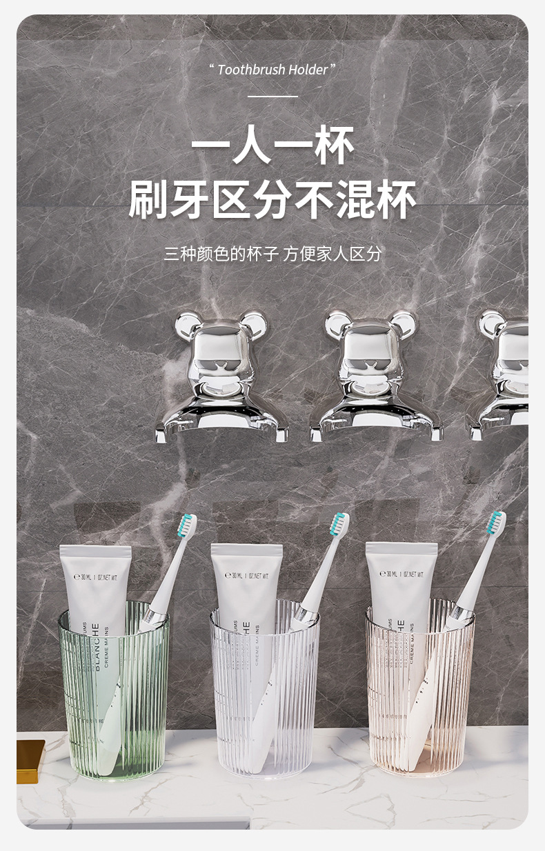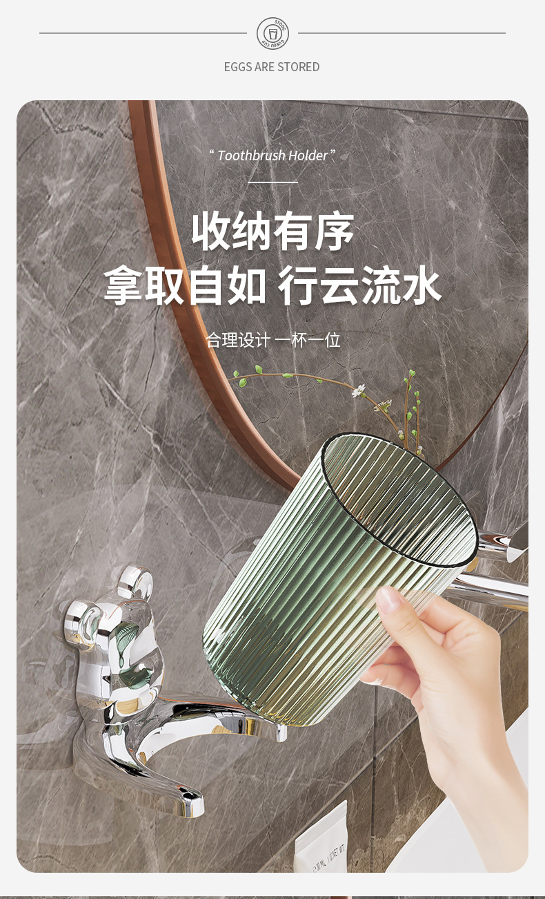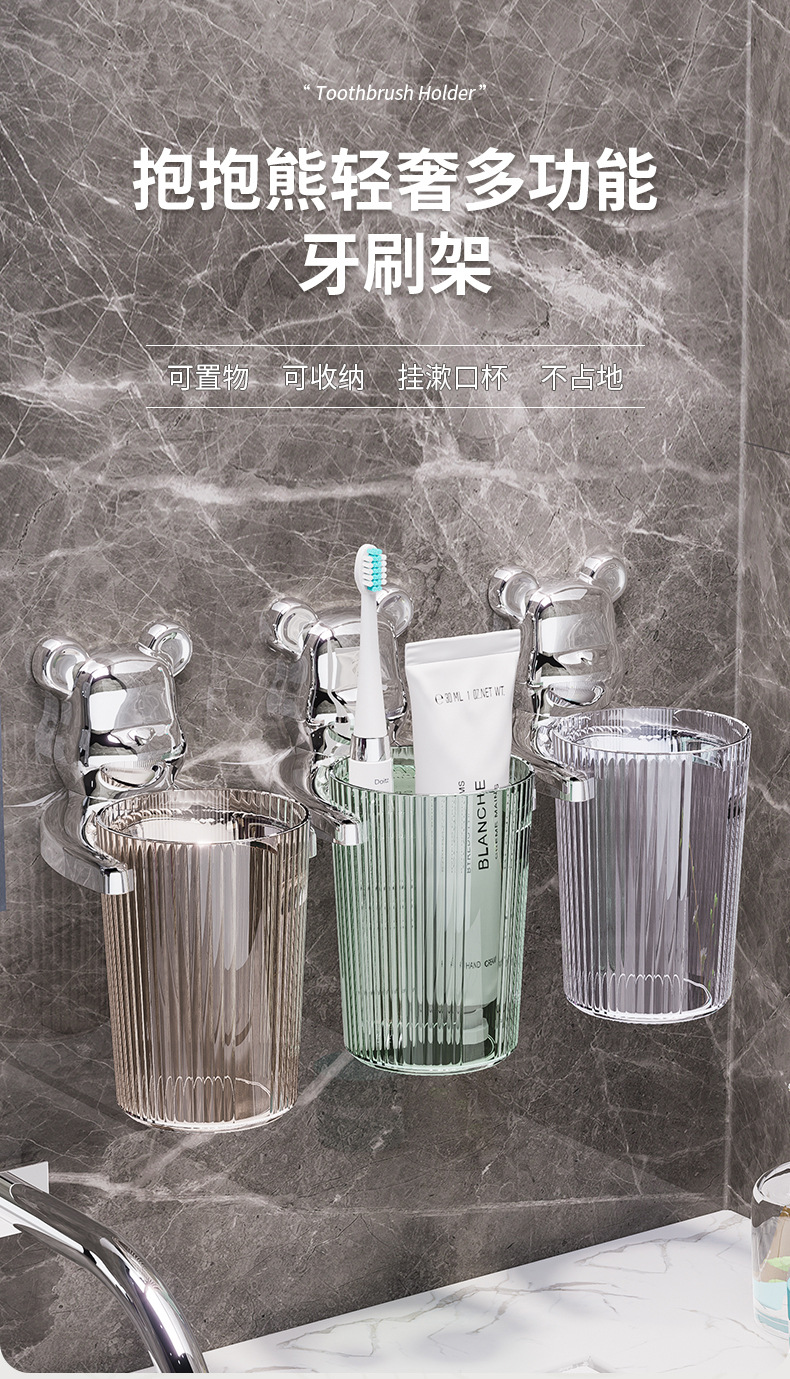 Bathroom Wall Hanging Gargle Cup Punch-Free Installation Transparent Material Anti-Rust BEBEAR Light Luxury Multi-Functional Toothbrush Rack