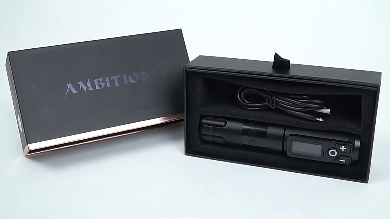 The device is a tattoo pen with built-in lithium battery, which can be used directly without the need for a foot pedal or guiding line. It is composed of two parts: 1. The upper half is the lithium battery power supply, and 2. The lower half is the tattoo pen. The middle part can be rotated to replace the upper half of the lithium battery. The specific function operation is as follows: