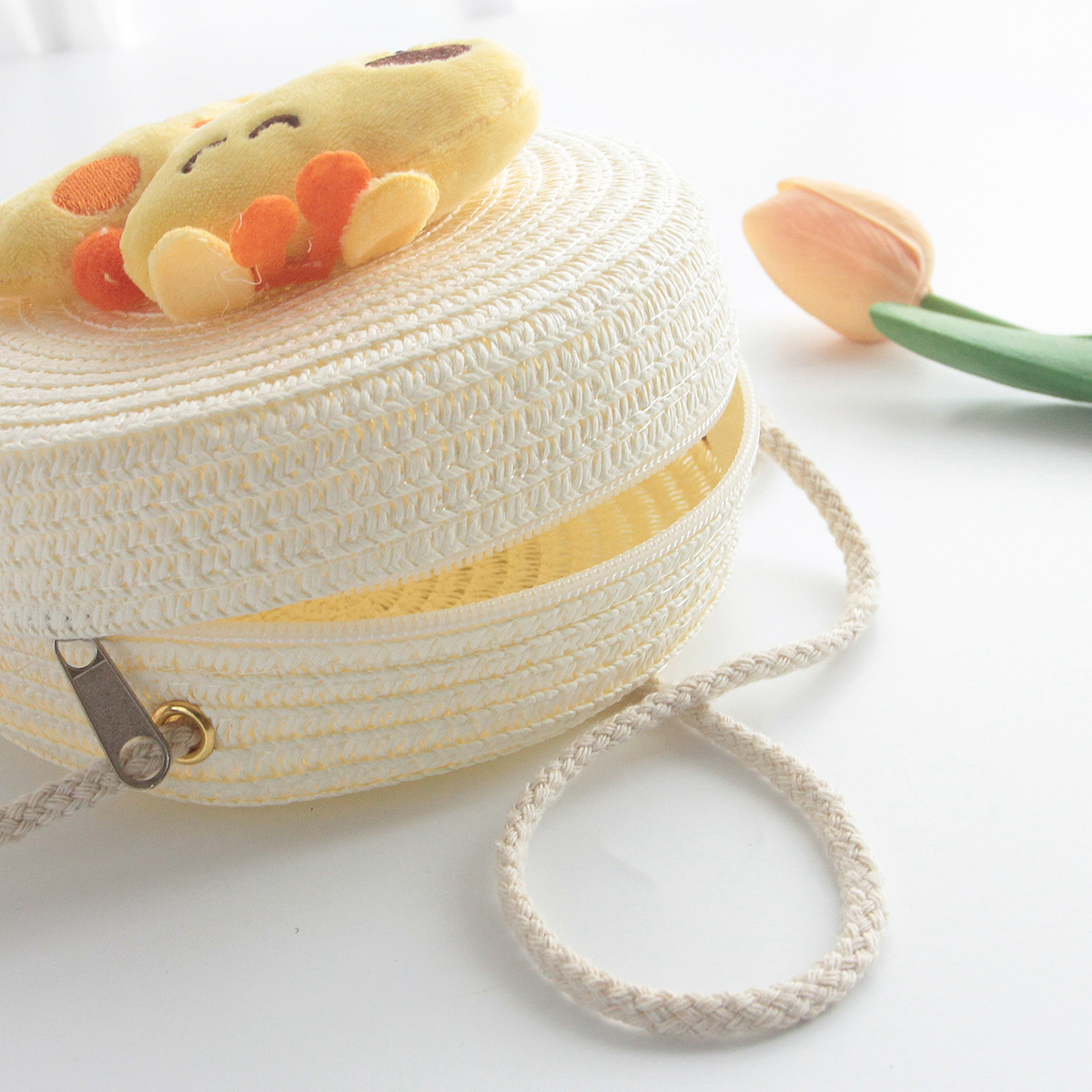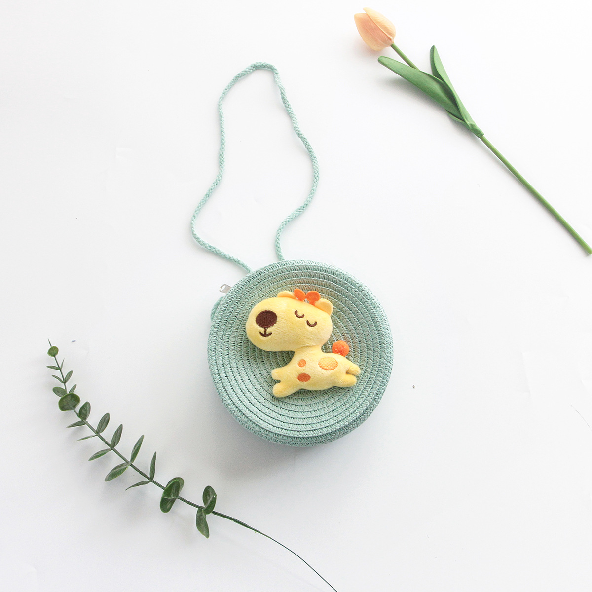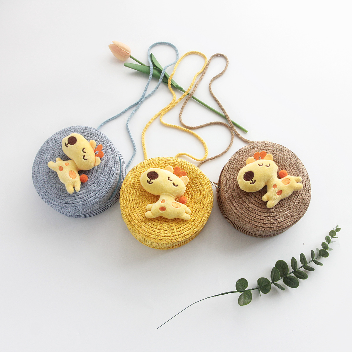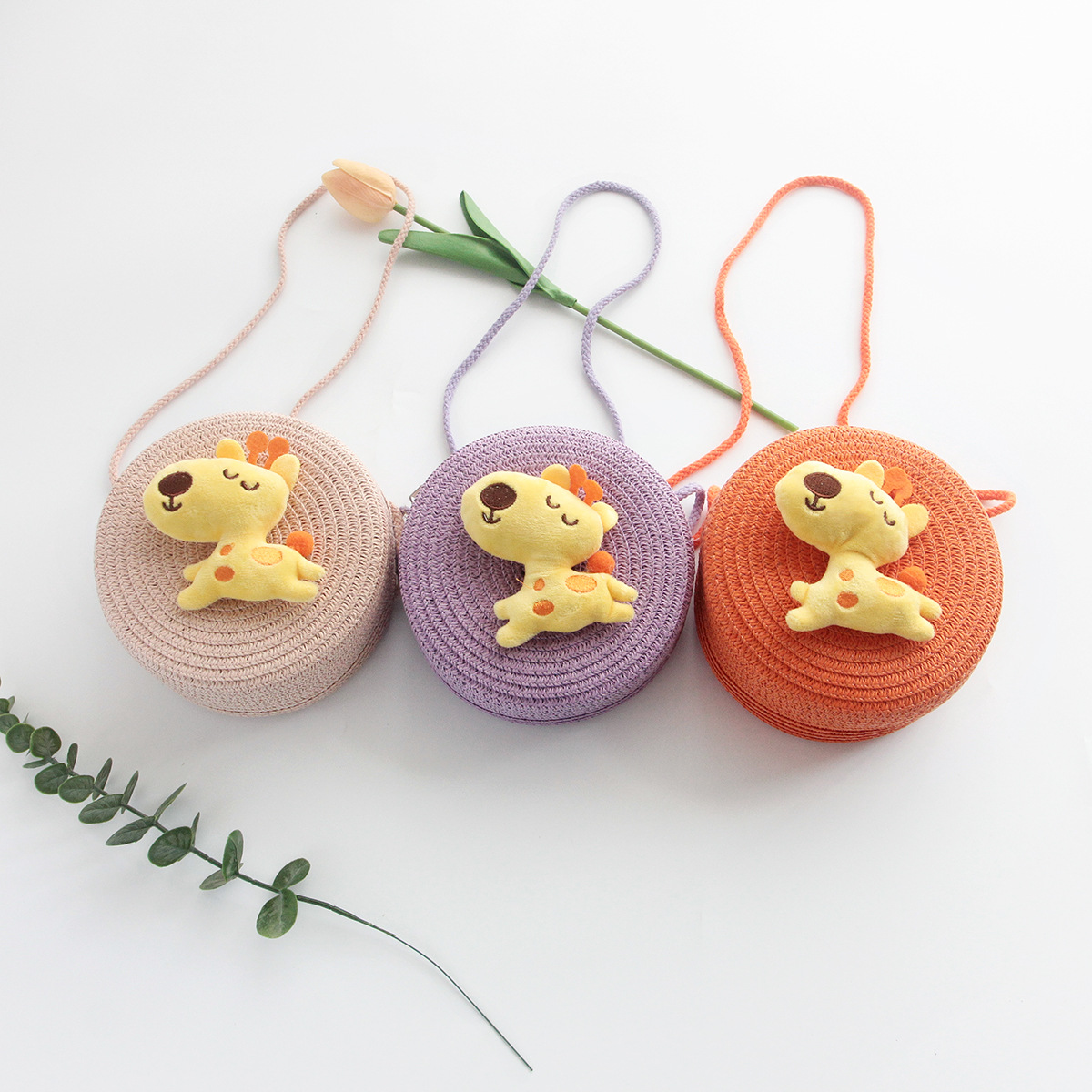 Korean Style New Summer Children's Macaron Color Woven Grass Messenger Bag Cartoon Cute Shoulder Bag Travel Versatile