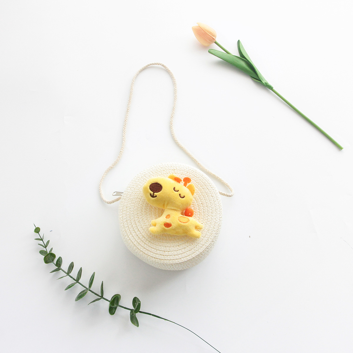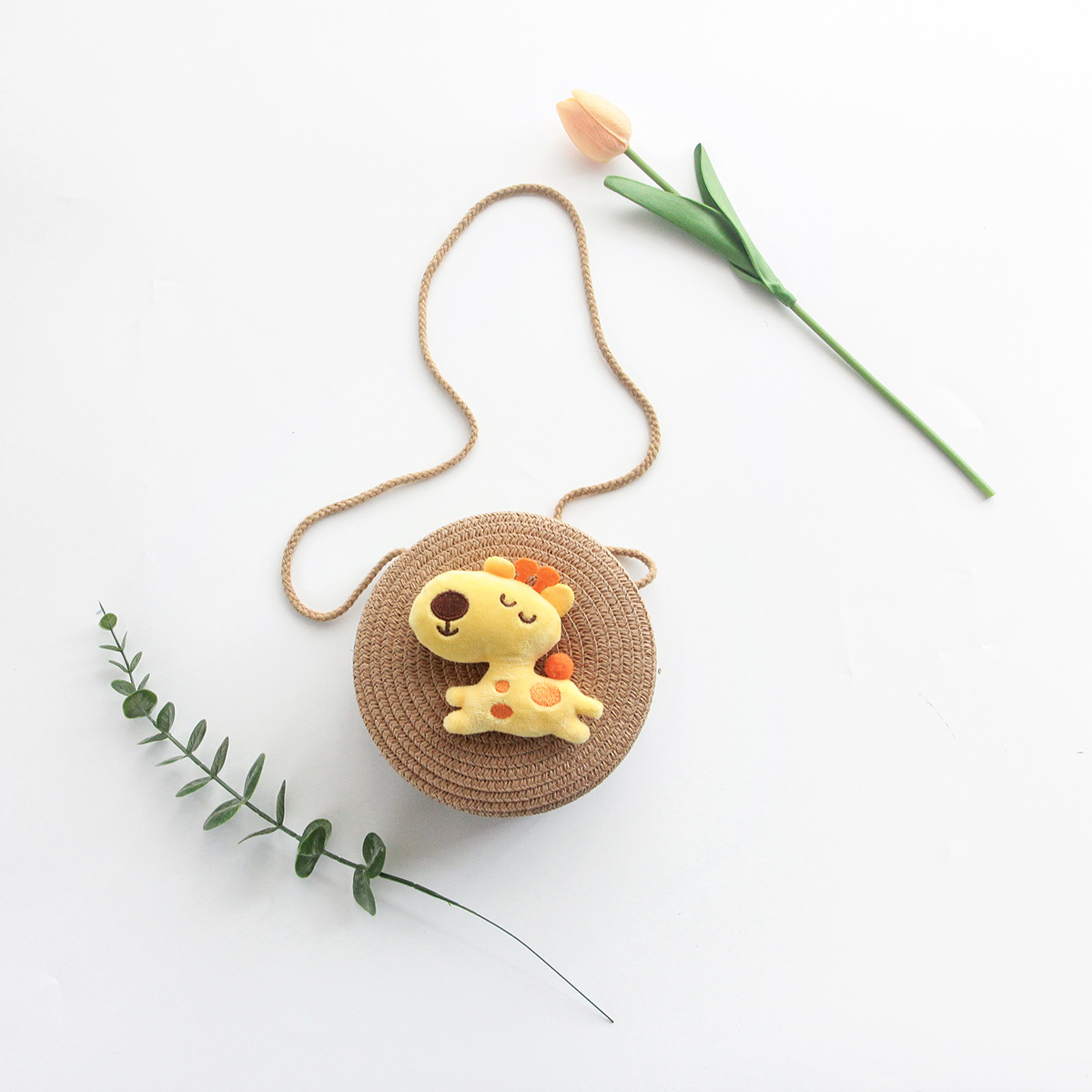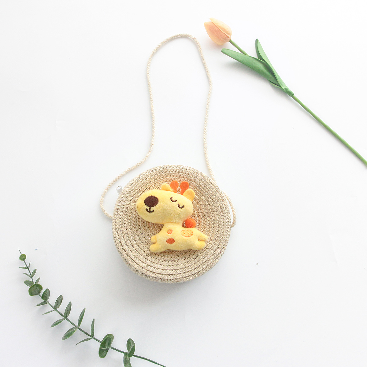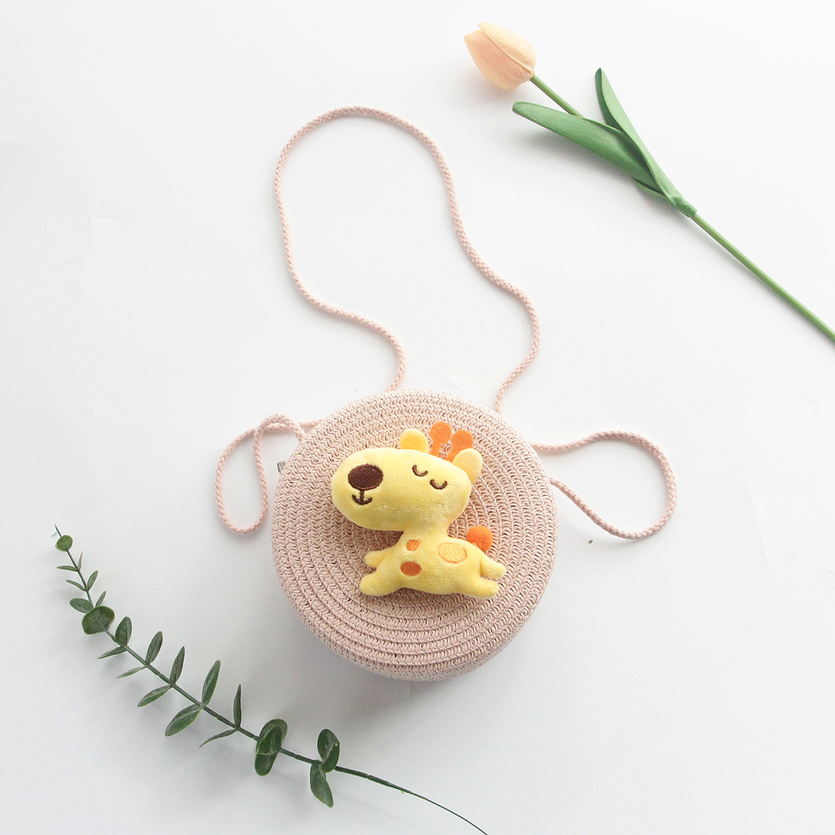 Korean Style New Summer Children's Macaron Color Woven Grass Messenger Bag Cartoon Cute Shoulder Bag Travel Versatile