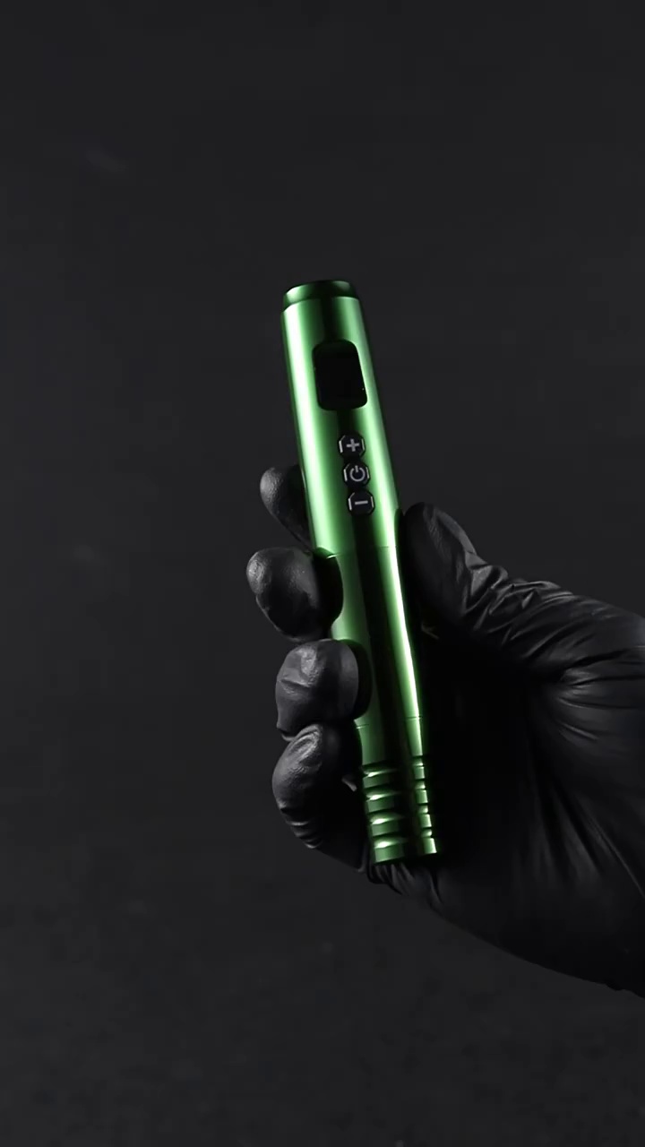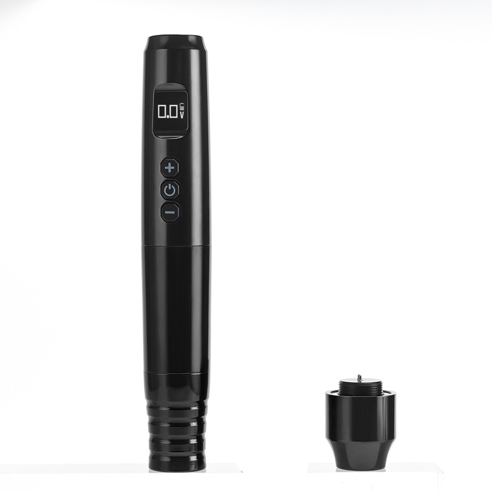 The device is a tattoo pen with built-in lithium battery, which can be directly loaded with needles and used without the need for a foot pedal or hook line. It is composed of two parts:1. The upper half is equipped with built-in lithium batteries; 2. The lower half is equipped with a motor and main components; 3. The middle part can be rotated to replace the lithium batteries in the upper half, or equipped with an RCA converter for use. The specific function operation is as follows: