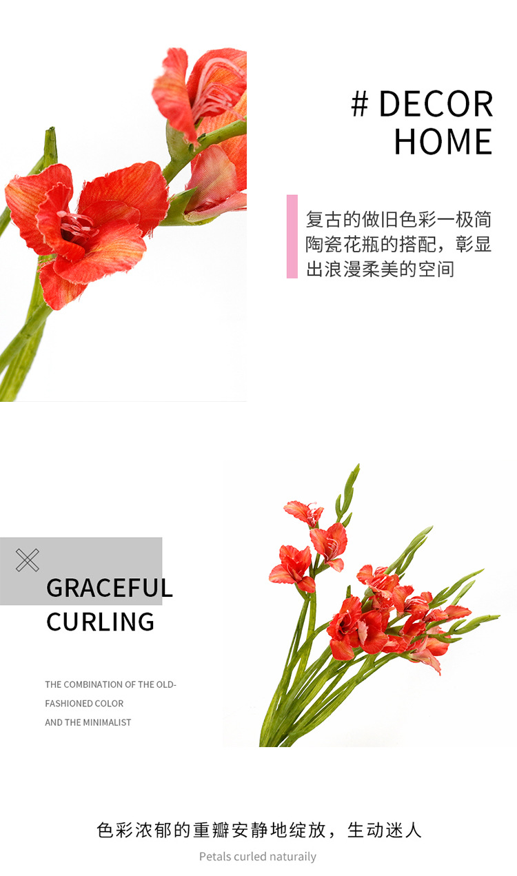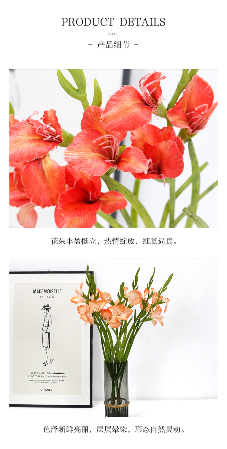 INS Simulation Plastic Branch 3 Flowers Small Gladiolus Living Room Dining Table Fake Flowers Light Luxury Floral Ornaments Home Common Freesia