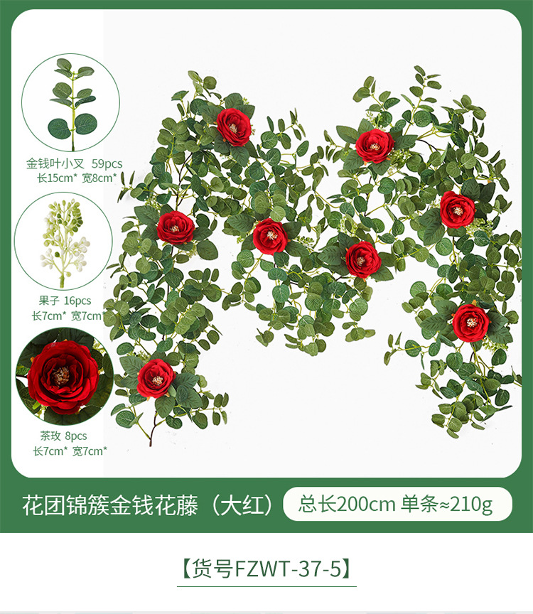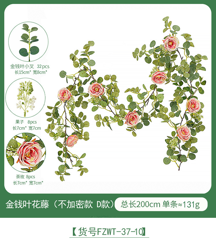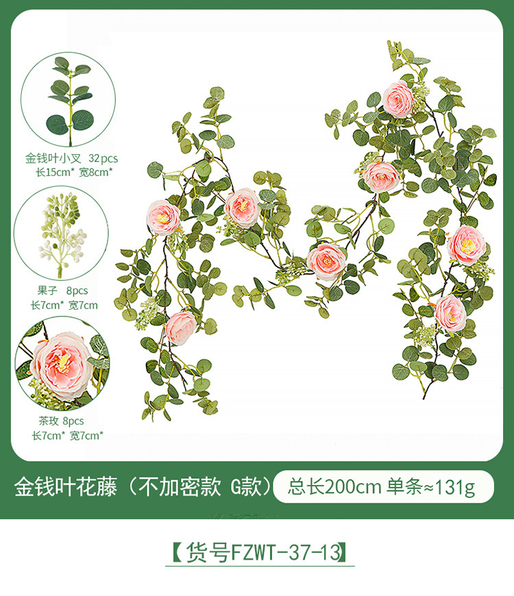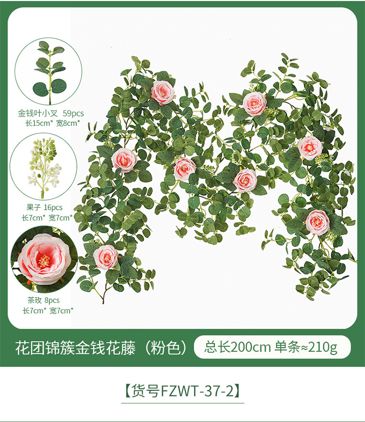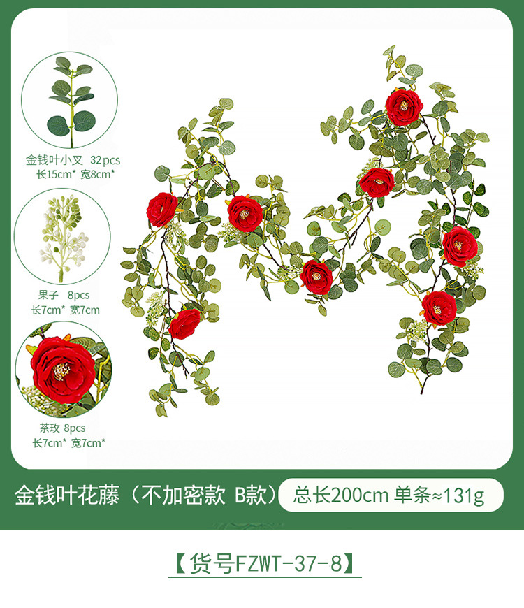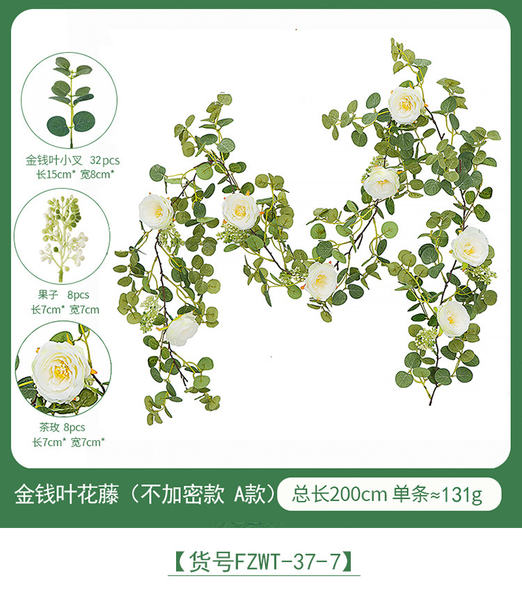 Factory Direct Sales Wedding Flower Wall Layout Encryption Camellia Zamioculcas Leaves Rattan Home Table Decoration Emulational Flower Vine 中文版