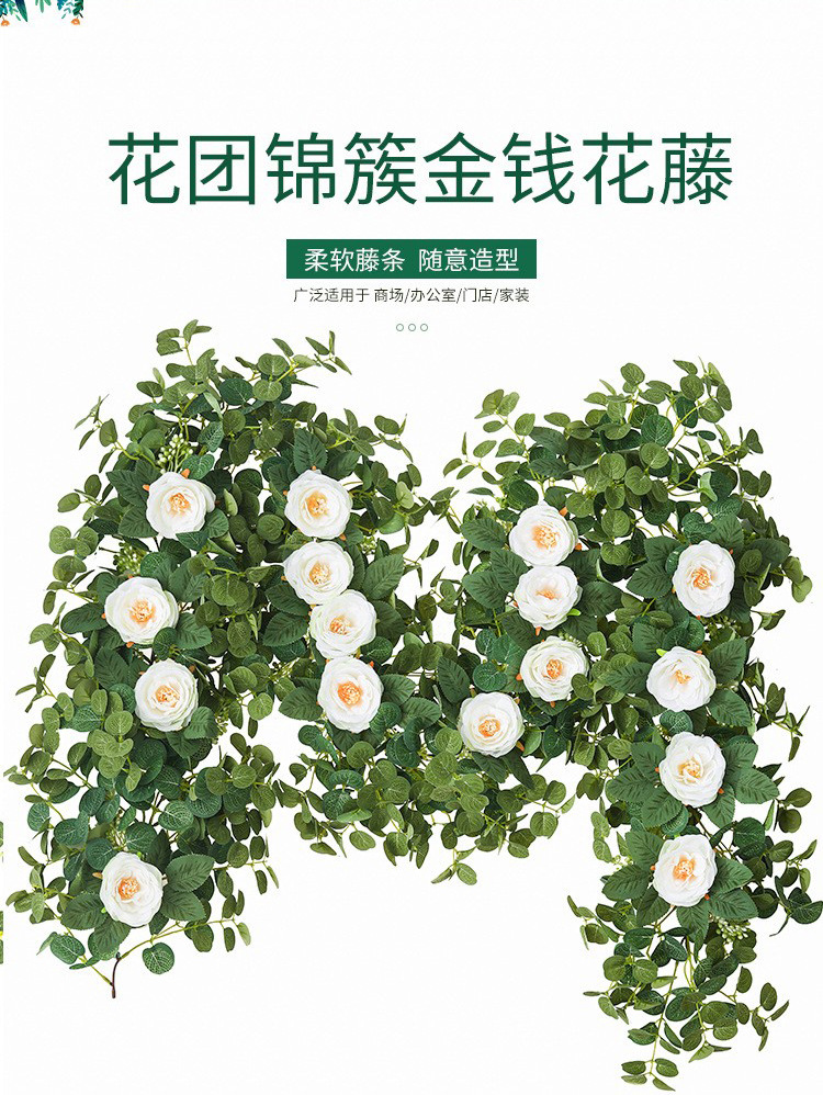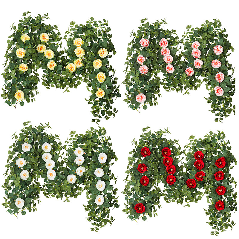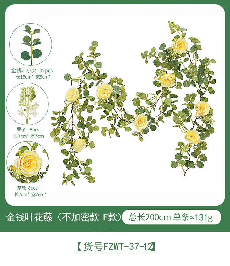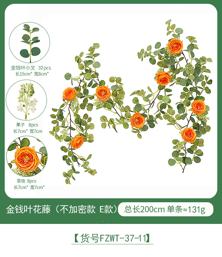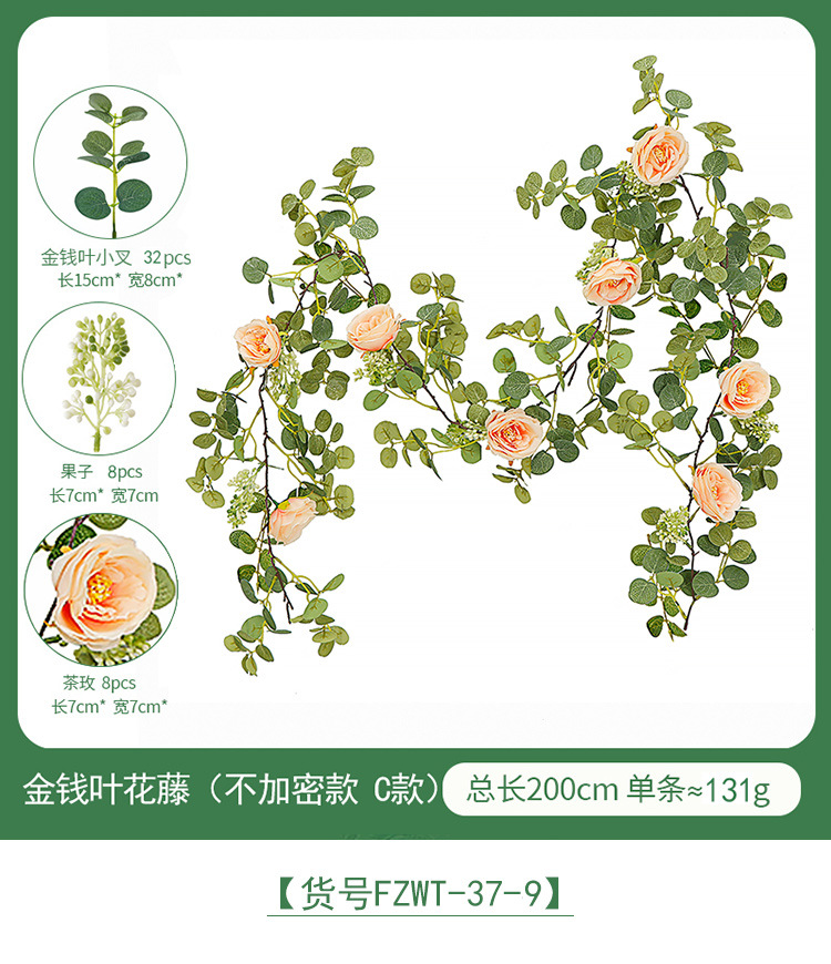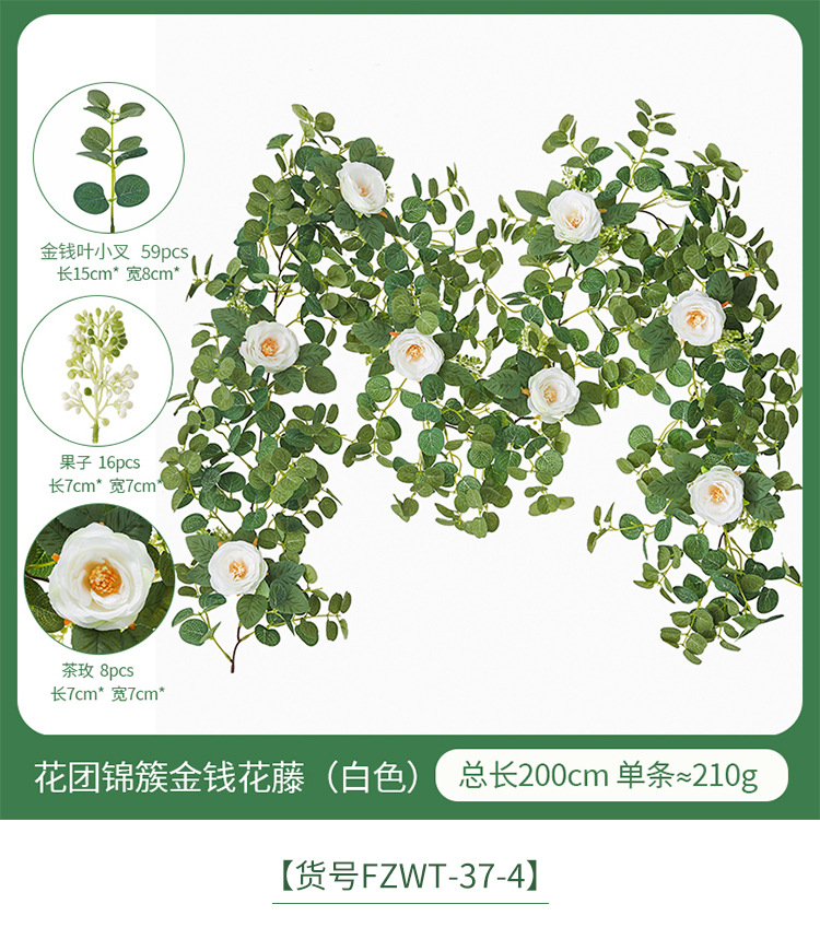 Factory Direct Sales Wedding Flower Wall Layout Encryption Camellia Zamioculcas Leaves Rattan Home Table Decoration Emulational Flower Vine 中文版