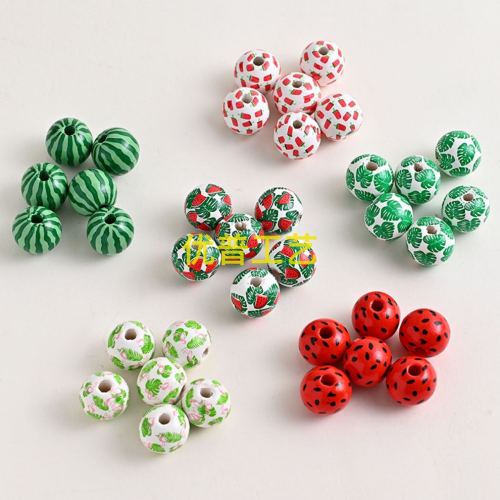 cross-border supply summer series wooden bead watermelon flamingo printing round beads straight hole scattered beads diy string beads materials ht
