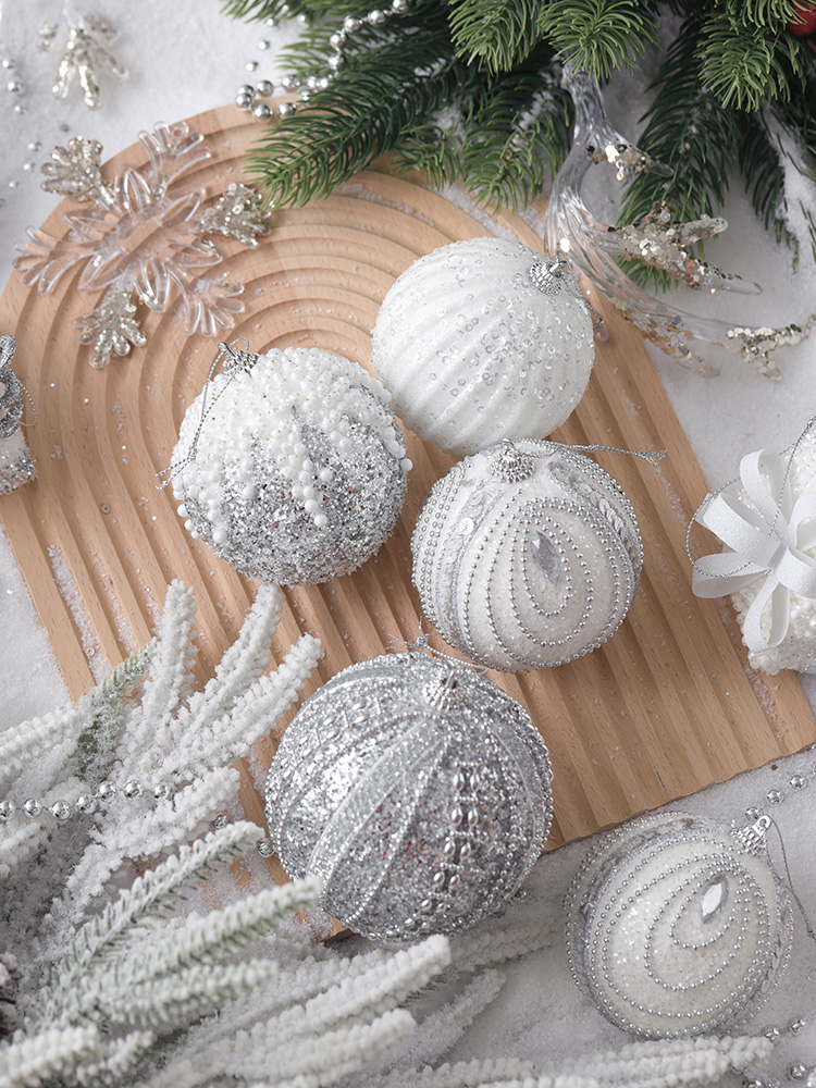 silver christmas ball christmas tree decoration pendant white colorful ball hanging ball show window scene decoration christmas decorations 中文版