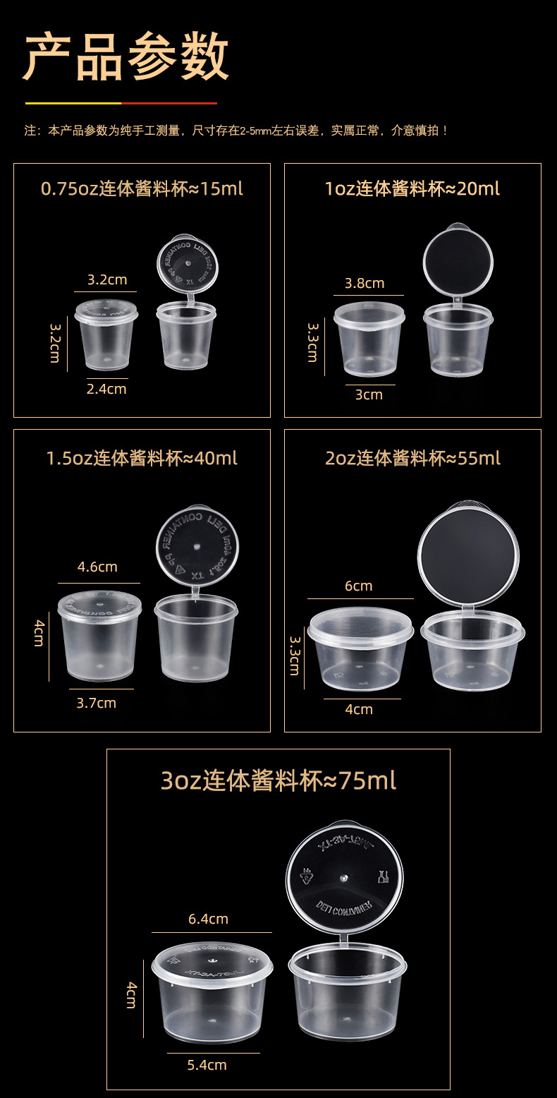 Disposable Sauce Container Seasoning Separately Paed Case Commercial Siamese Sauce Cup round Takeaway Sauce Dipping Transparent to-Go Box