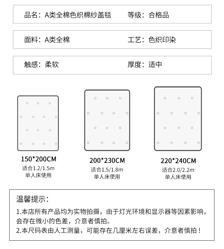 | 200 * 230cm single piece (about 1.60kg) | ¥169.58 | 71 piece available |