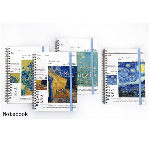 checkered notebook b5 coil notebook van gogh notepad hard surface page with grids 2287