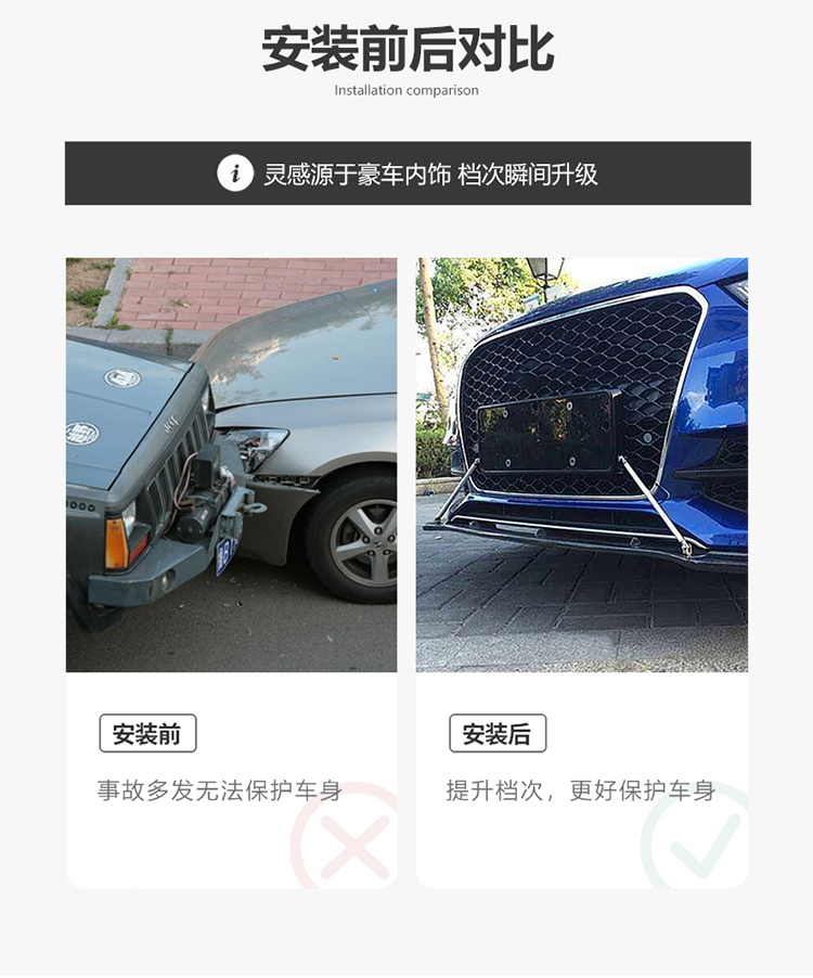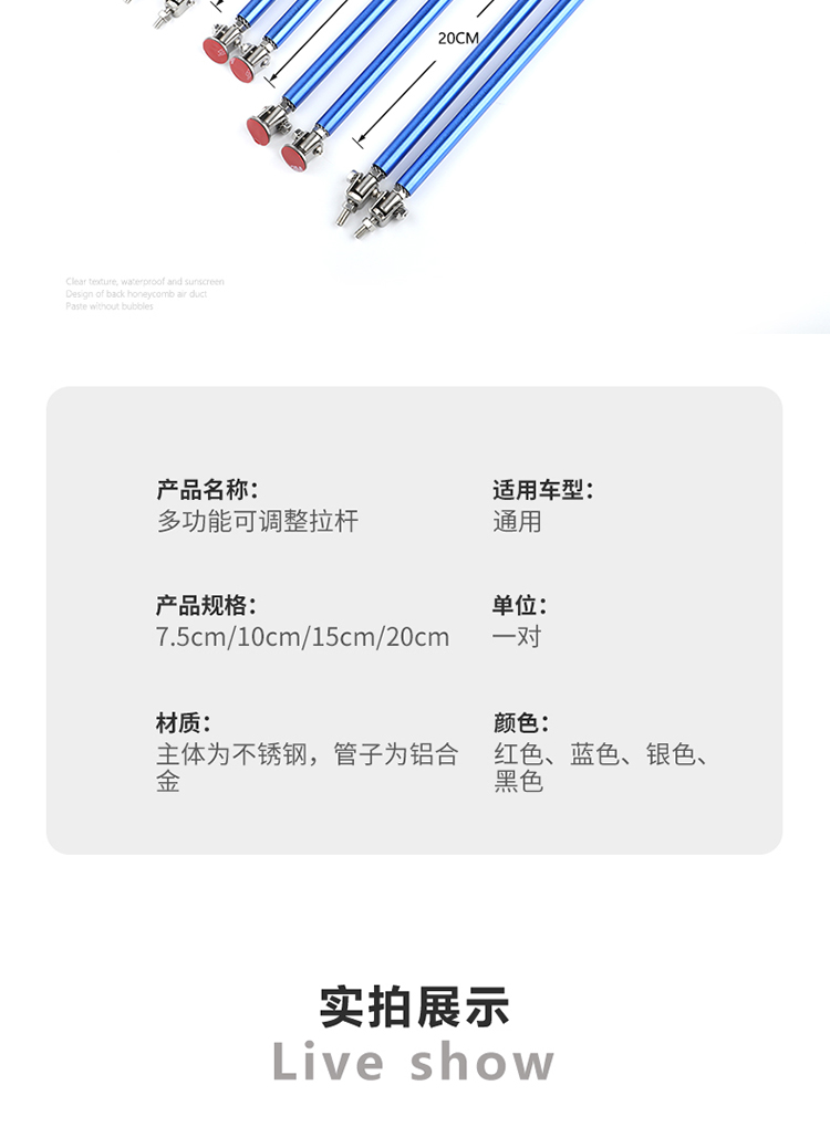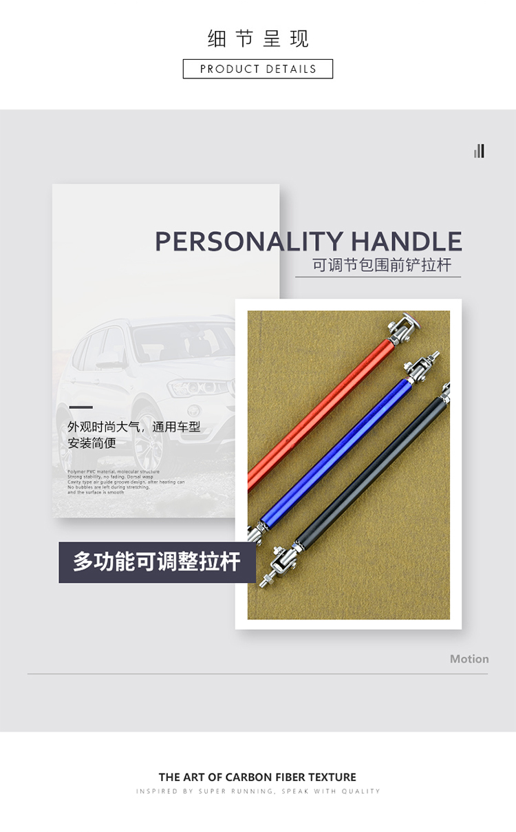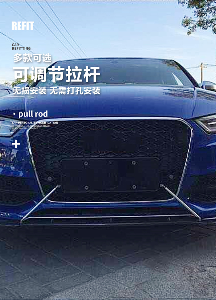 auto tower bar modified size surrounding front shovel extendable pull rod front lip decoration telescopic punch-free pull rod 中文版