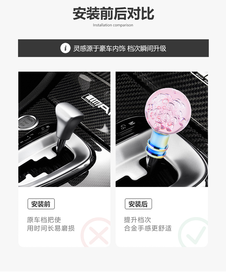 car gear head crystal ball transparent gear manual gear automatic gear universal modification gear lever with stops gear head 中文版