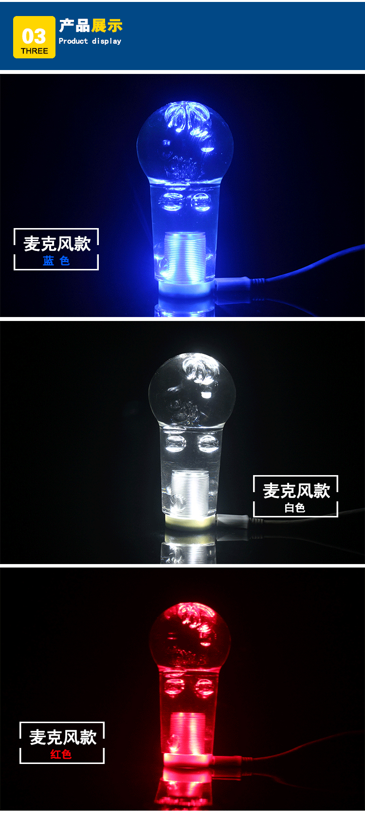 Crystal stick lamp baseThe color of the light is white, blue, red, and rainbow.,The appearance color is available in white, blue, and red.Dear customers, please make sure to include a note when you make the purchase so that we can ship your order to you in a timely manner!
