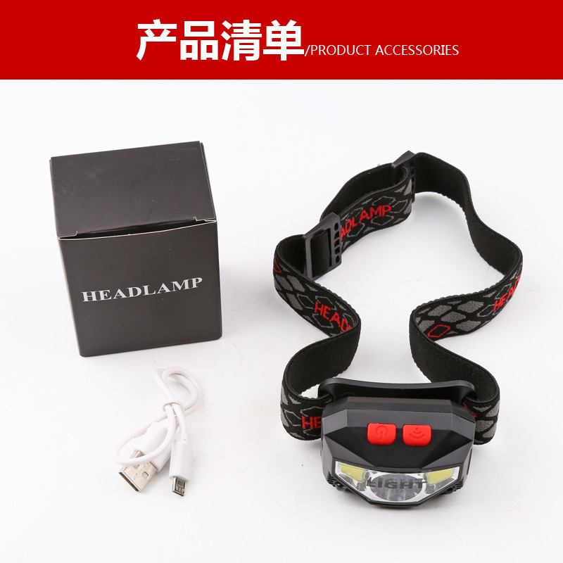 New LED Sensitive Red Light Fishing Headlamp with Mini USB Built-in Battery and Multi-functional Lightweight COB Strong Headlamp