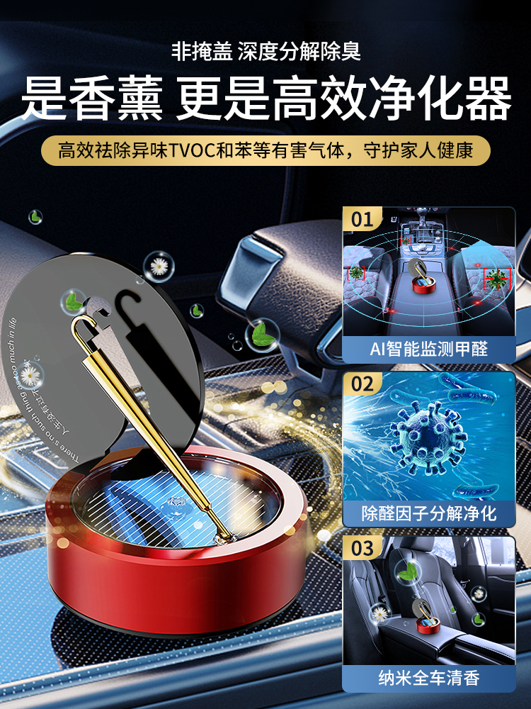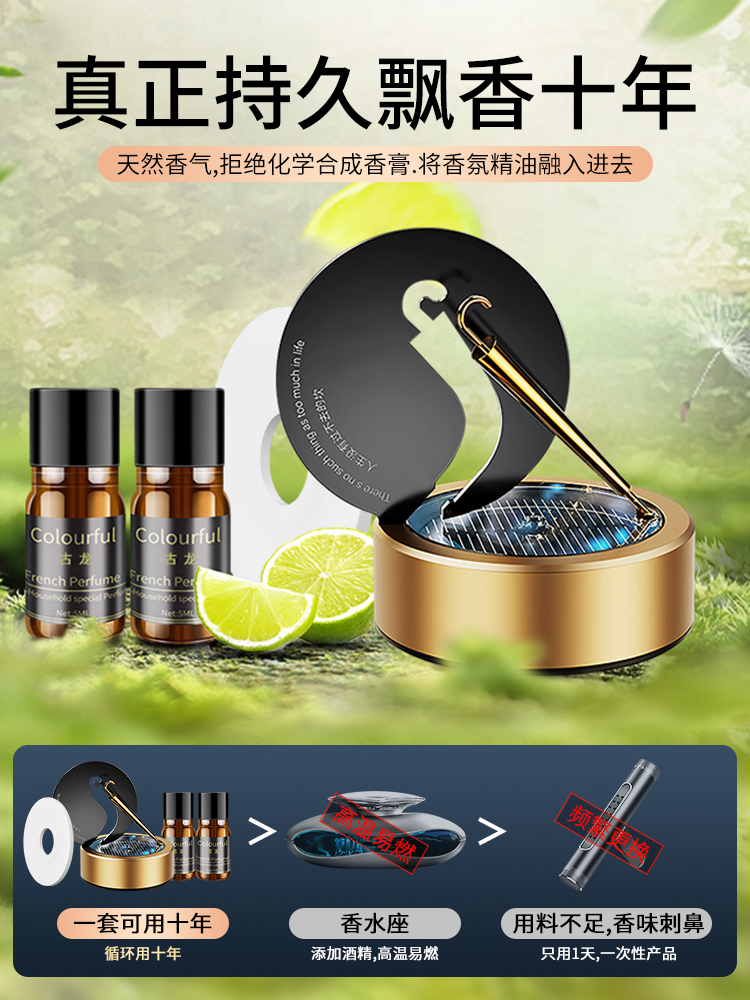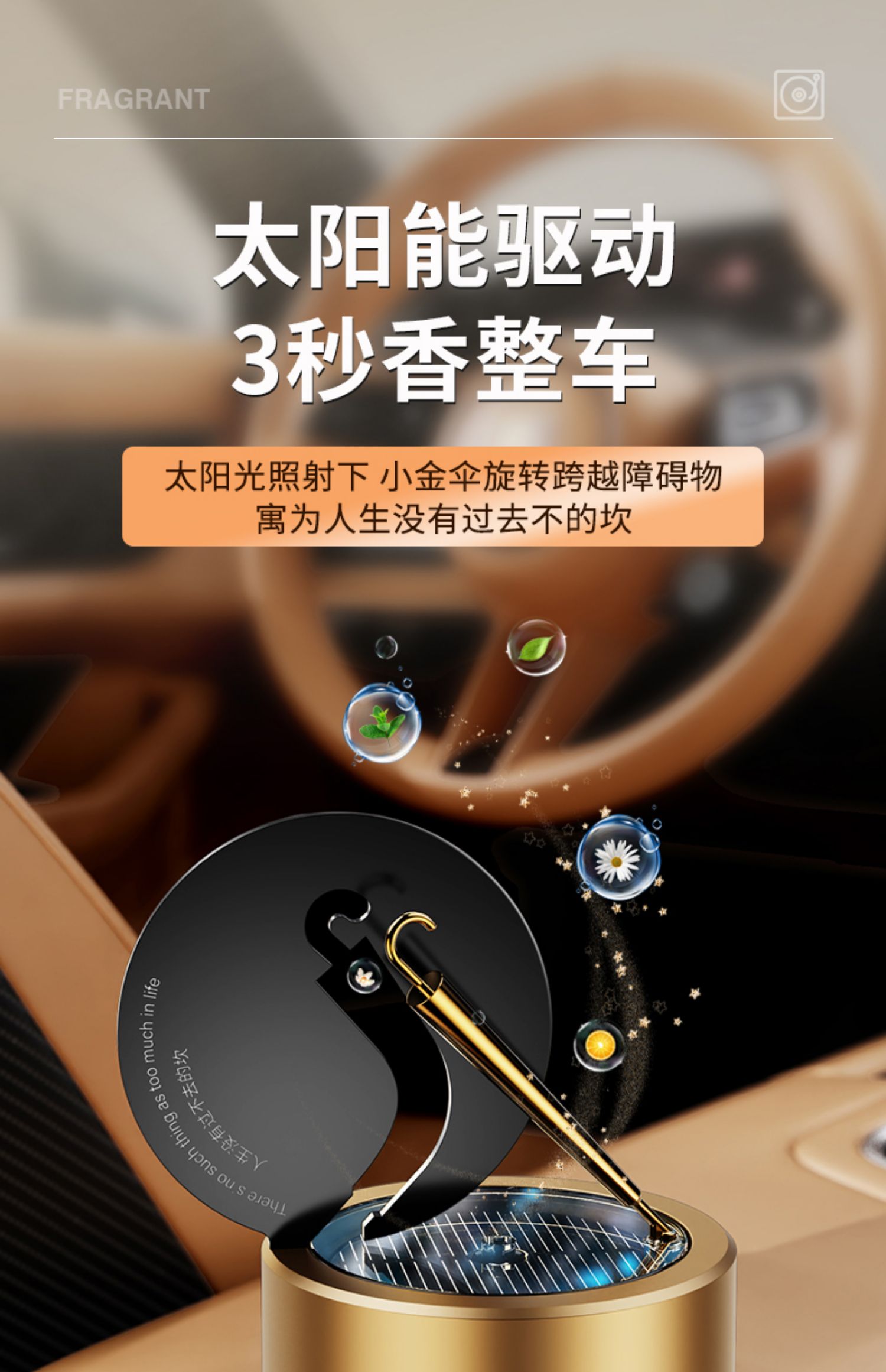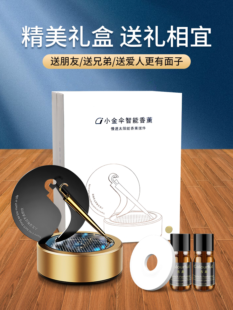solar car aromatherapy car perfume rotating small gold umbrella ornament center console decoration men's special high-end 中文版