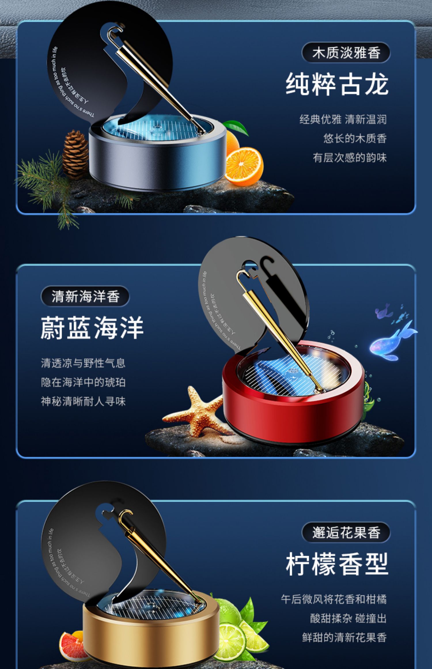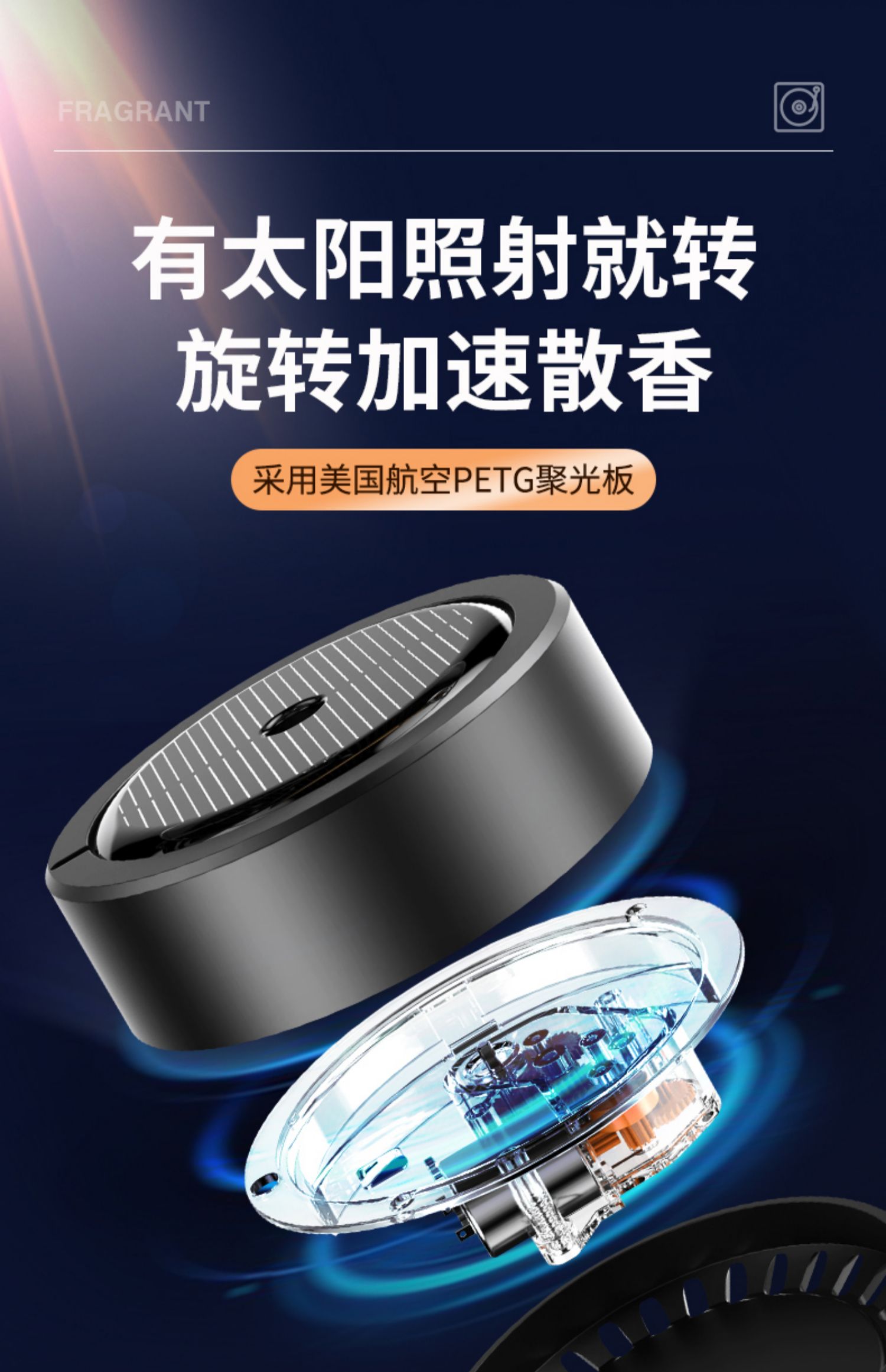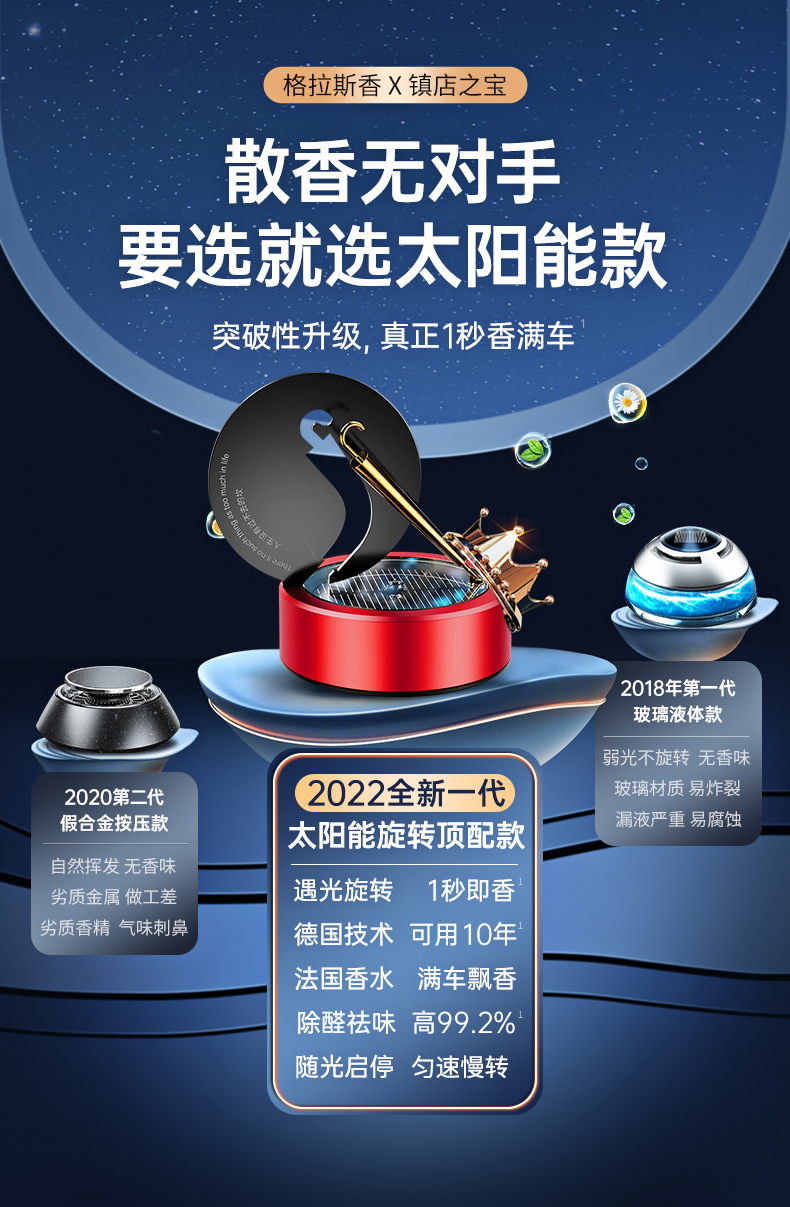 solar car aromatherapy car perfume rotating small gold umbrella ornament center console decoration men's special high-end 中文版