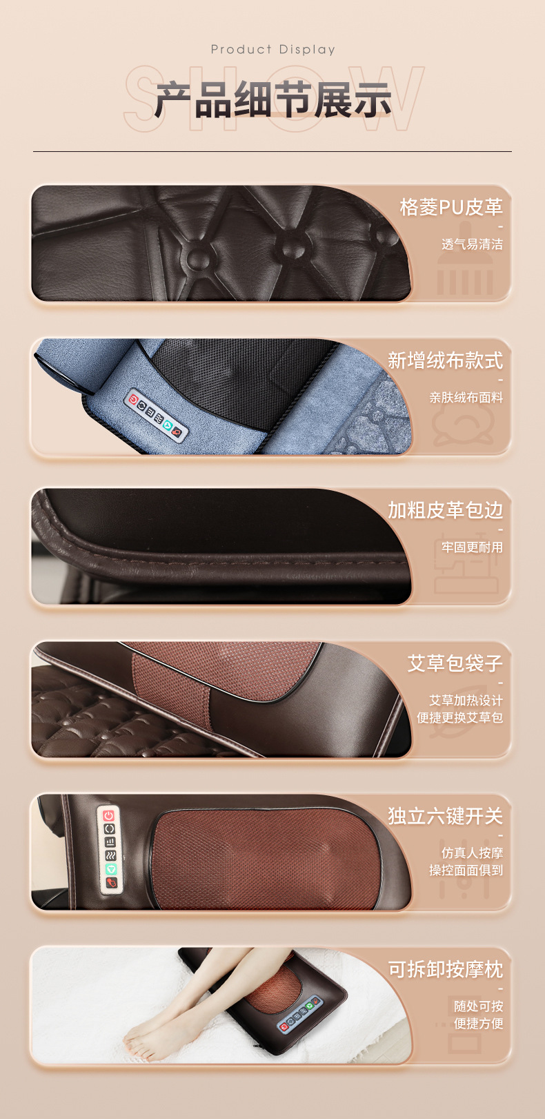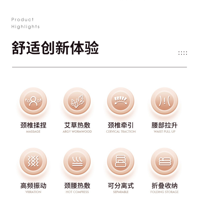 Cross-Border Massage Couch Padded Shoulder Neck Massager Multifunctional Hot Compress Massage Instrument Cervical Spine 中文版