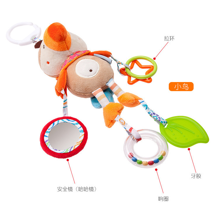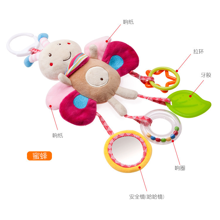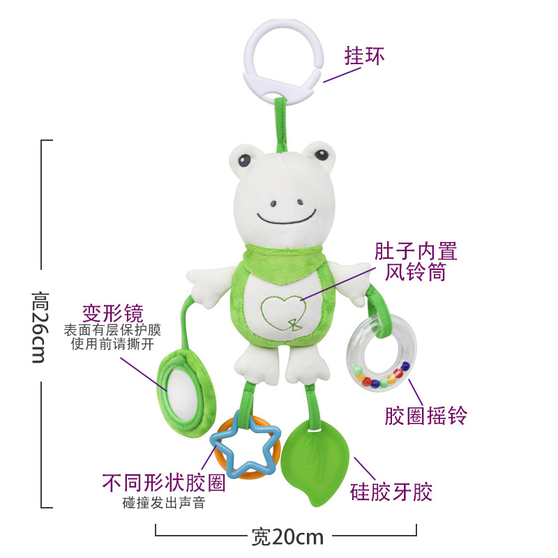 【Product Introduction】: This cute and adorable cartoon animal design is not only safe but also fun and interesting. It is equipped with a sound sheet that makes a crisp rustling sound when squeezed, which is very popular with babies. It is a safe teething toy that helps relieve discomfort during the teething period. The hand-cranking ring can attract the baby's attention very well. It is the beginning for babies to recognize themselves through this small safety mirror, which exercises the baby's small muscle hands. It is a small toy worth playing for babies.