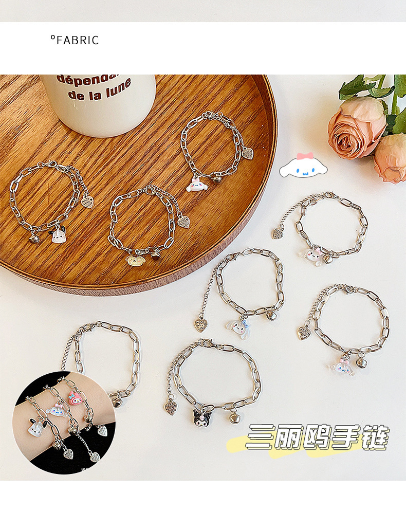 Sanrio Bracelet Female Wholesale Cartoon Couple Adjustable Bracelet Bell Cute Dog Gift Student Girlfriends 中文版